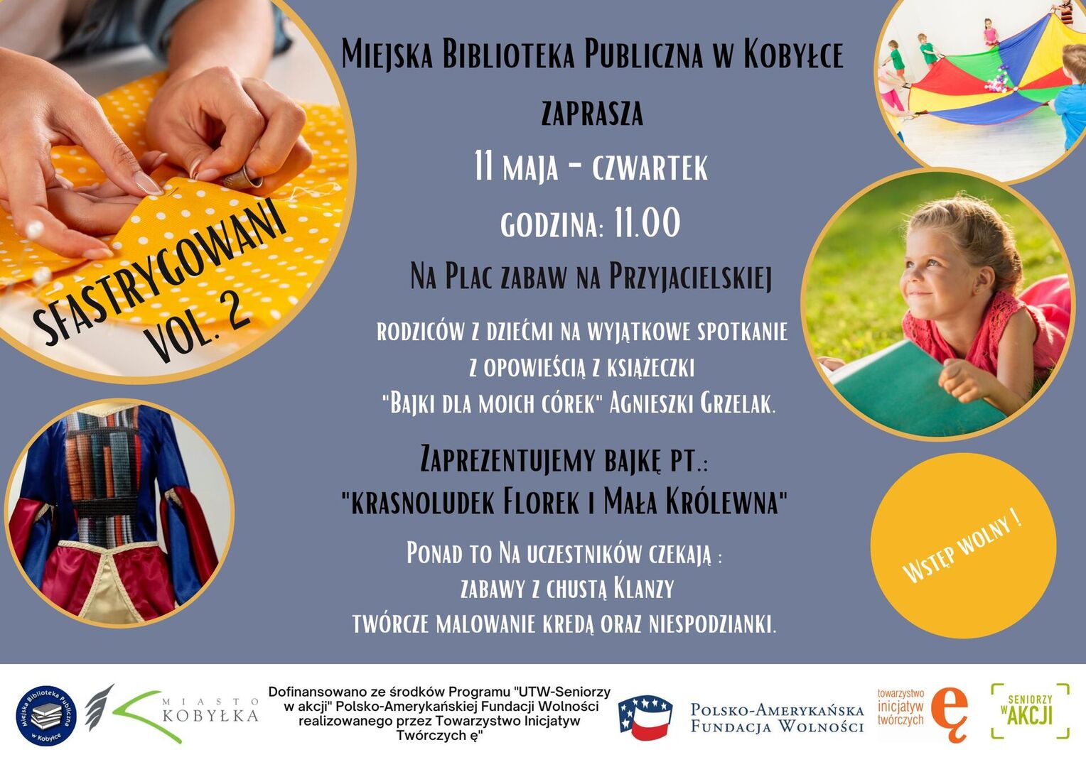 Drodzy Czytelnicy. Zapraszamy do zapoznania się z harmonogramem wizyt animatorów na placach zabaw w kolejnych dniach realizacji projektu Sfastrygowani vol. 2. W dniu 9 maja zapraszamy na plac zabaw na Maciołkach, 10 maja widzimy się na placu zabaw na Brzozowej, 11 maja zapraszamy na plac zabaw przy ulicy Przyjacielskiej, a 12 maja przy ulicy Osiedlowej. Wszystkie spotkania rozpoczynają się o godzinie 11:00. Na uczestników czekają zabawy z chustą klanzy, twórcze malowanie kredą i niespodzianki.