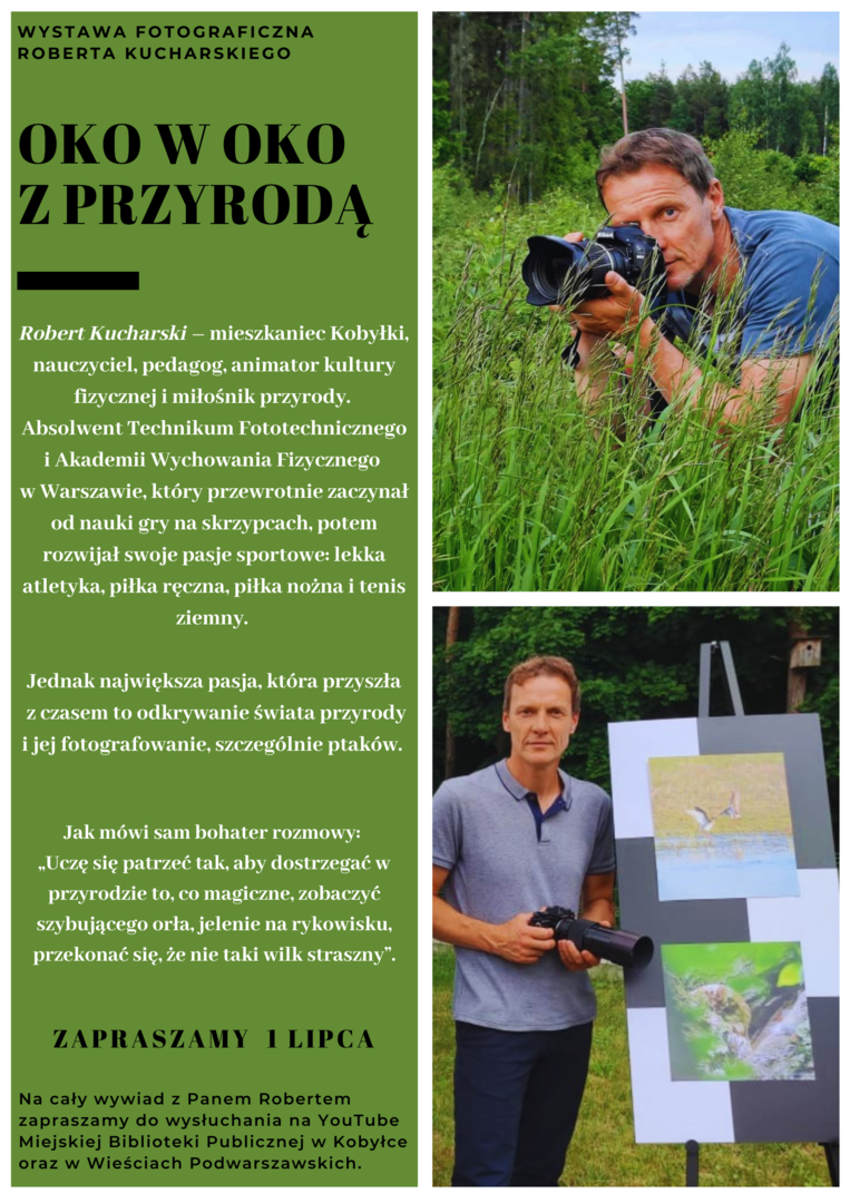 Na rozmowę z Robertem Kucharskim w przeddzień wystawy fotografii pt.: „Oko w oko z przyrodą” w Miejskiej Bibliotece Publicznej w Kobyłce zaprasza Sylwia Carzyńska.