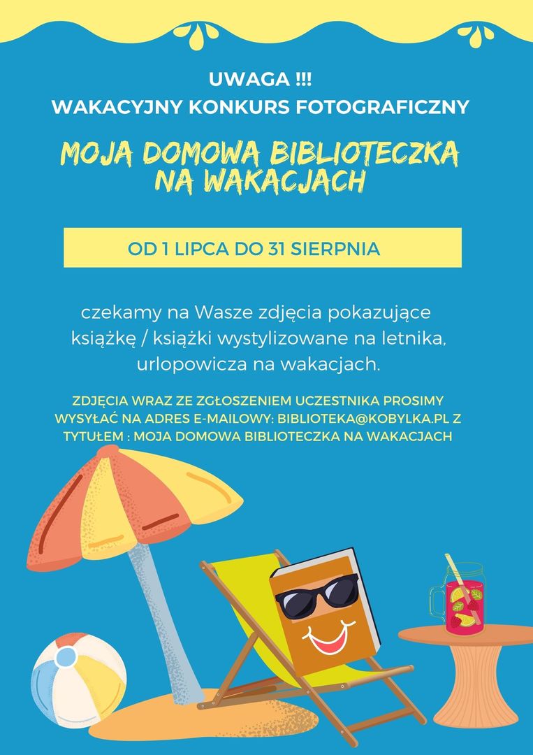 Drugi dla nieco starszych Czytelników pt.: "Moja domowa biblioteczka na wakacjach", więcej informacji w regulaminie i na plakacie.