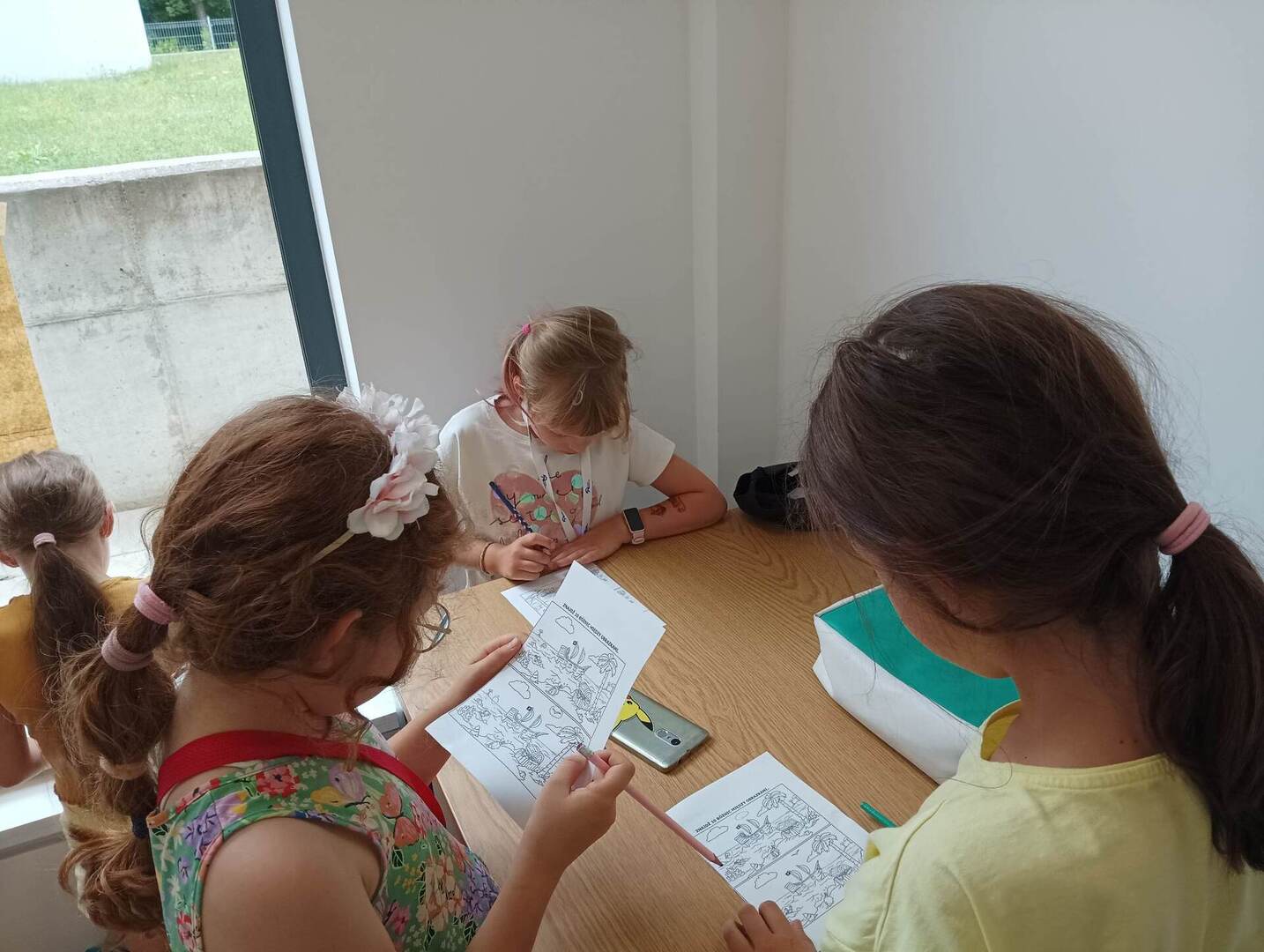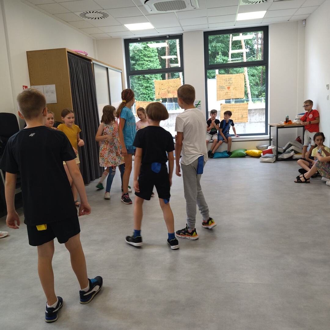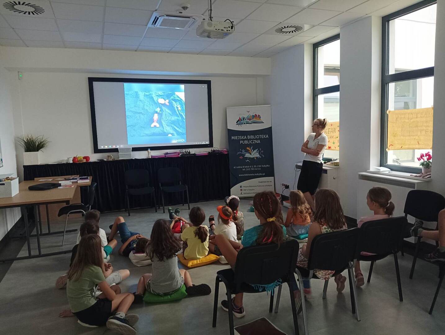 Za na mi przedostatni dzień półkolonii pod hasłem „Okno na innowacje”. Zajęcia rozpoczęły od zabaw ruchowych i gimnastyki umysłowej (ćwiczeń na spostrzegawczość). Odbyła się również projekcja filmów wykonanych przez uczestników metodą poklatkową. Dzieciaki zapoznały się również z aplikacją Tik-Toka. Każdy z zespołów miał za zadanie nagrać Tik-Toka dotyczącego : czytania, książek lub tego co można robić w bibliotece.