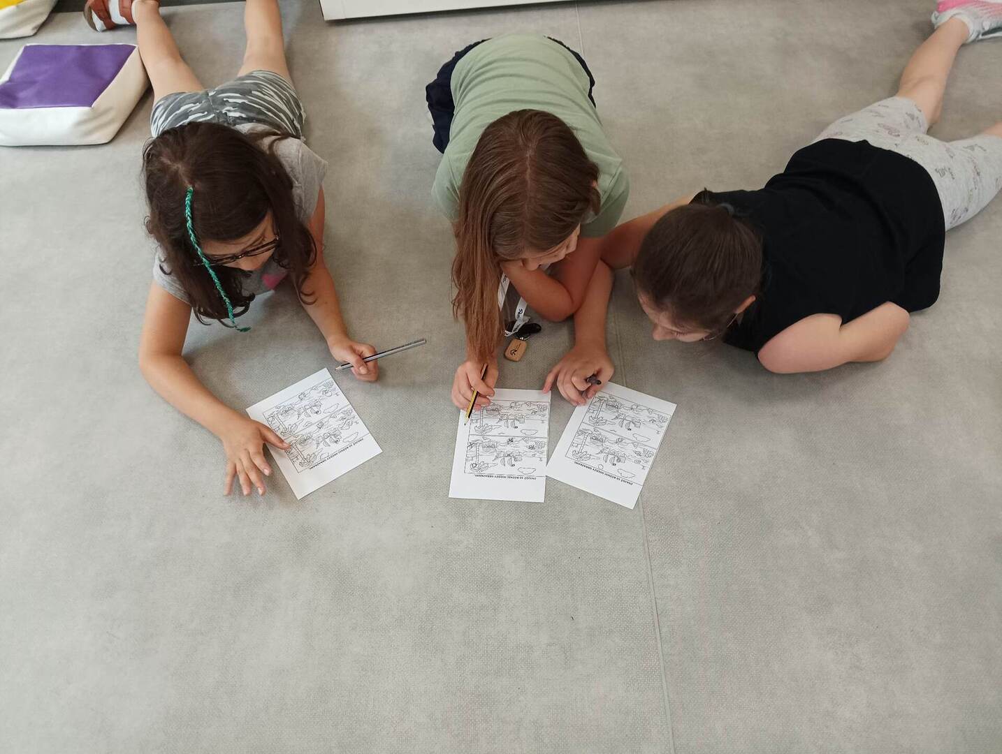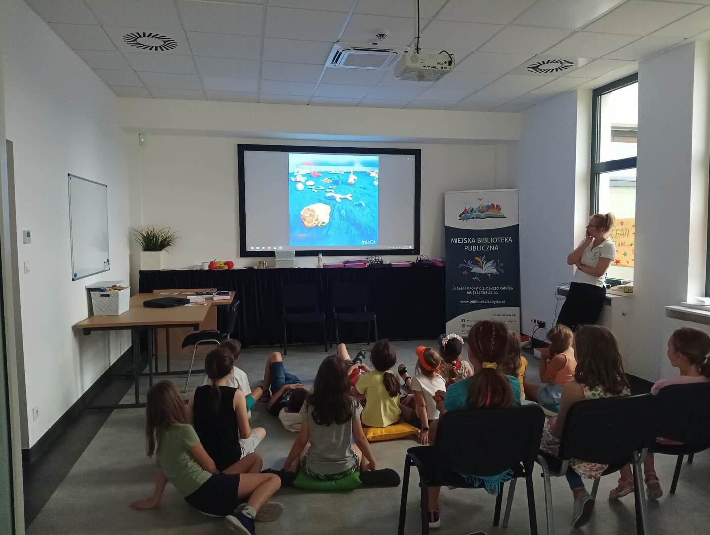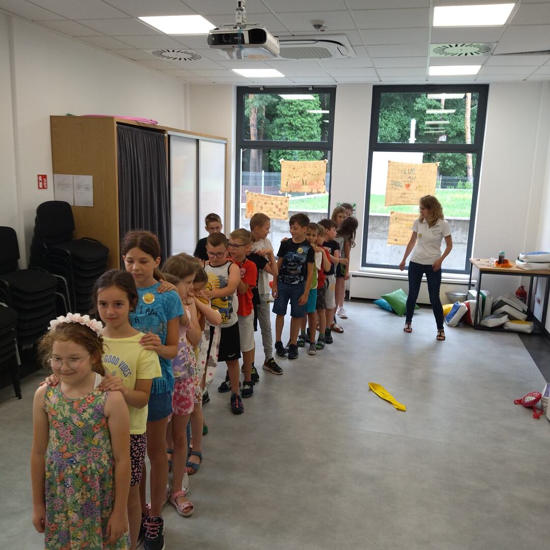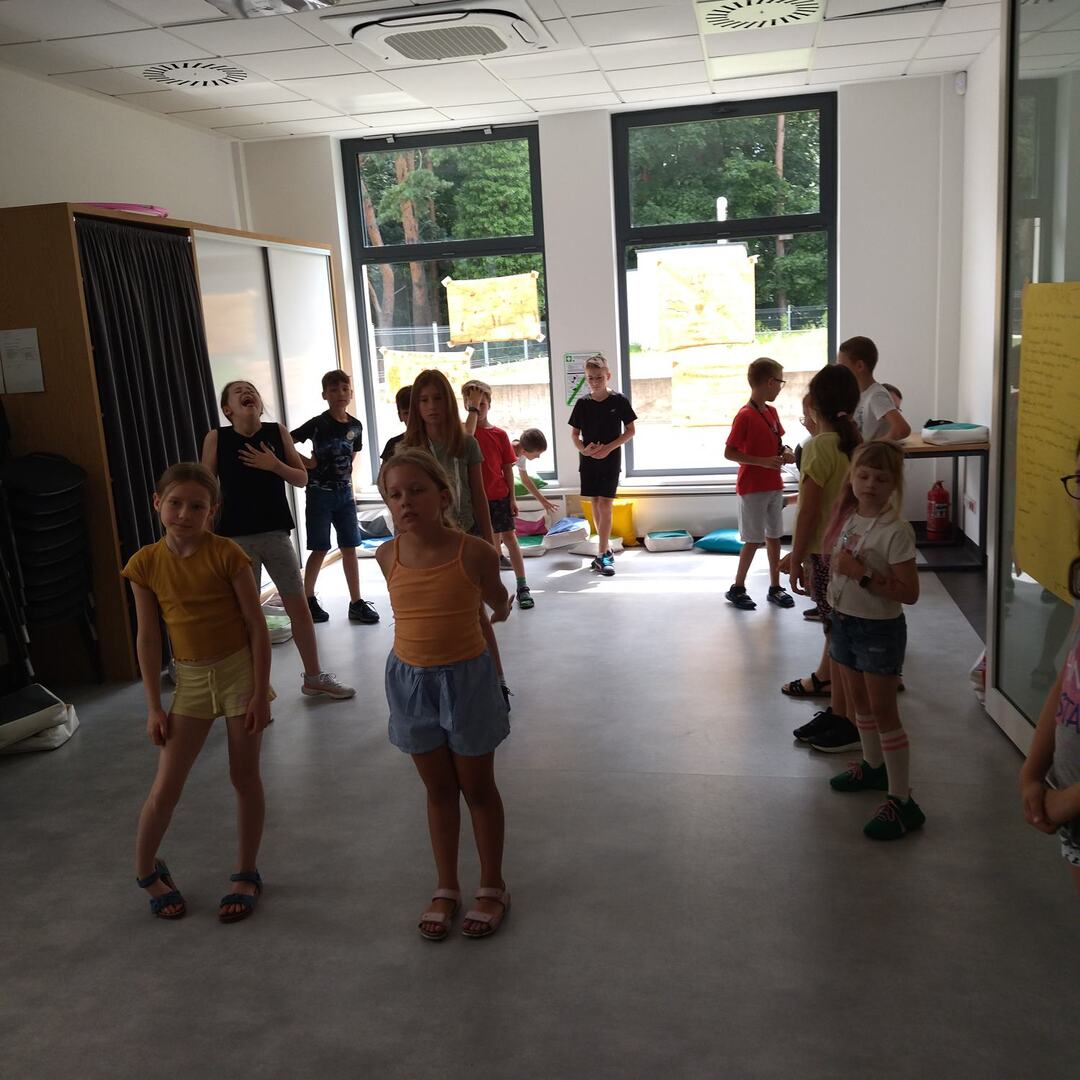 Za na mi przedostatni dzień półkolonii pod hasłem „Okno na innowacje”. Zajęcia rozpoczęły od zabaw ruchowych i gimnastyki umysłowej (ćwiczeń na spostrzegawczość). Odbyła się również projekcja filmów wykonanych przez uczestników metodą poklatkową. Dzieciaki zapoznały się również z aplikacją Tik-Toka. Każdy z zespołów miał za zadanie nagrać Tik-Toka dotyczącego : czytania, książek lub tego co można robić w bibliotece.