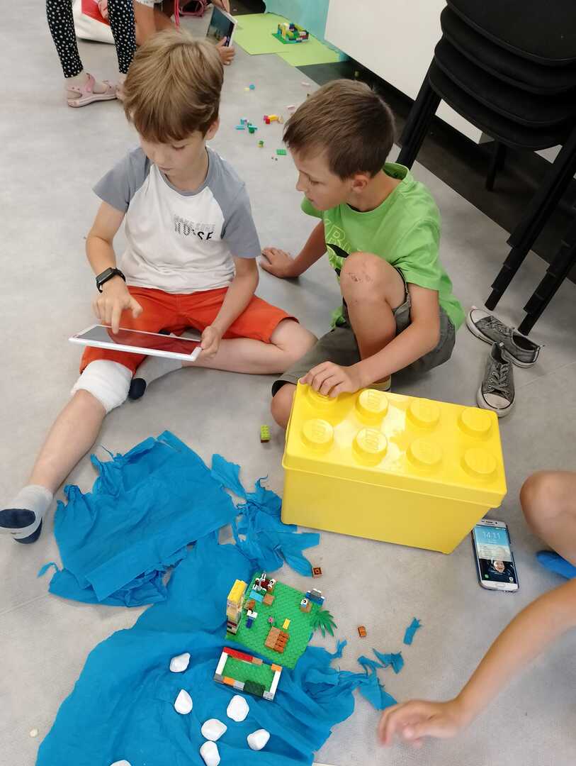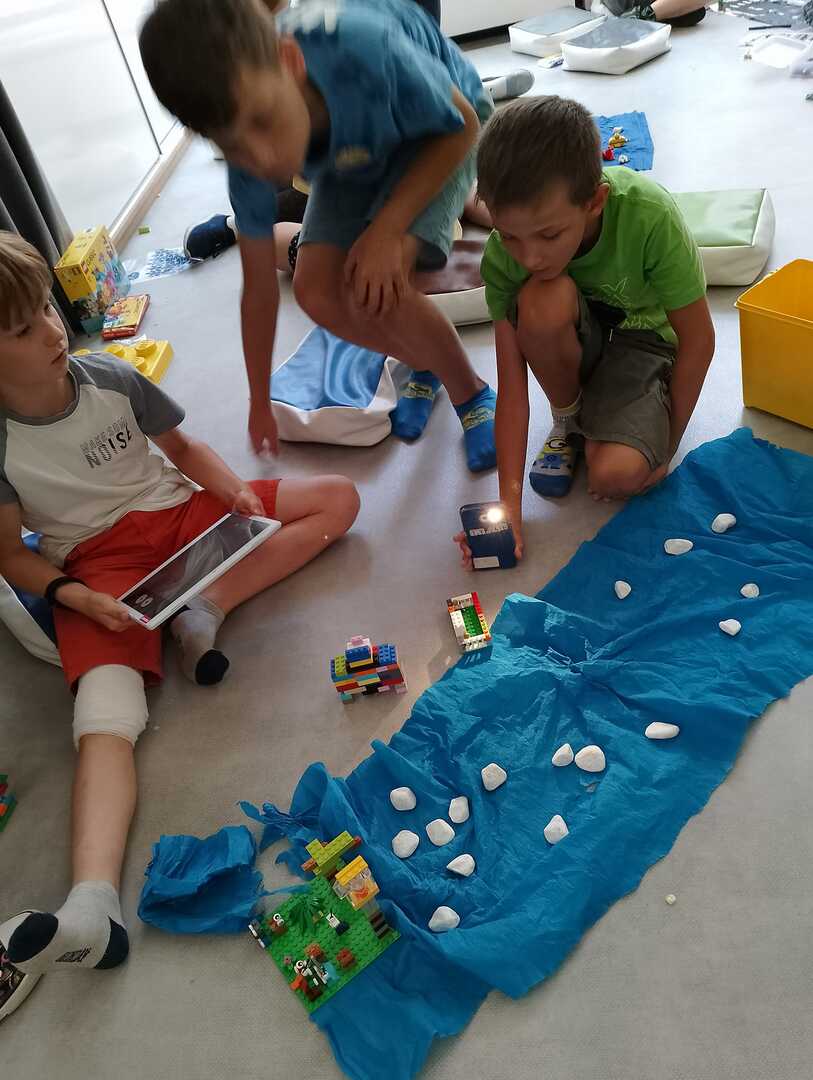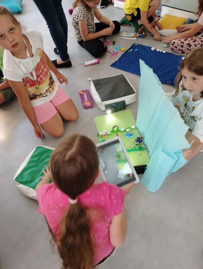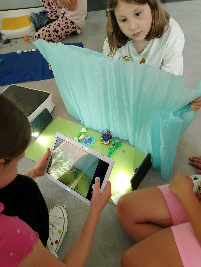 Drugi dzień Lata z Biblioteką pod hasłem "Oko na innowacje" minął bardzo pracowicie. Dziś uczestnicy półkolonii wzięli udział w warsztatach tworzenia animacji po klatkowych. Dowiedzieli się czym jest animacja po klatkowa i jak ją stworzyć. Zapoznali się z aplikacją InShot, w której stworzyli swoje animacje. Zanim jednak przystąpili do tworzenia filmów uczestnicy podzielili się na zespoły, w których pracowali nad animacjami. Każda z grup wylosowała temat swojego filmu, następnie zespoły przygotowały scenariusze i scenografię. Przy użyciu klocków lego, plasteliny i innych materiałów powstały plany filmowe. Reżyserzy, kamerzyści, scenografowie i oświetleniowcy spisali się na medal. Filmy przez nich wyprodukowane będą wyświetlone ostatniego dnia półkolonii.A tym czasem zapraszamy do obejrzenia galerii z dzisiejszych zajęć.