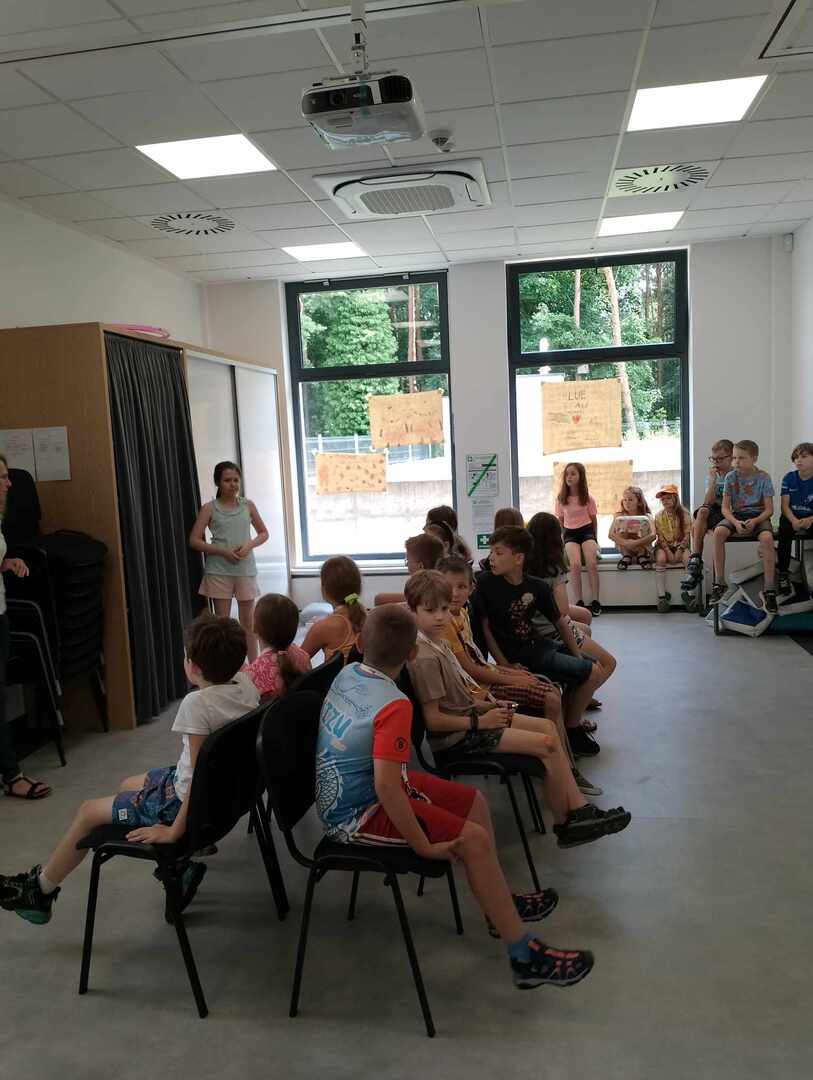 Pierwszy turnus Lata z Biblioteką dobiegł półmetka. Jak ten czas niesamowicie szybko mija. Dziś uczestnicy półkolonii podczas zajęć dopracowywali swoje filmy wykonane metodą po klatkową. W kolejnej części dnia był czas na ruch i zabawy. Bawiliśmy się m.in. w Dzień-Noc, Gorące krzesła, Ogonki, Dyrygent itp. W części warsztatowej dzieci poznały kolejną aplikację, tym razem była to Canva, służąca do tworzenia własnych projektów zaproszeń i plakatów. Uczestnicy warsztatów wykonali zaproszenia na piątkowy seans filmowy dla rodziców.