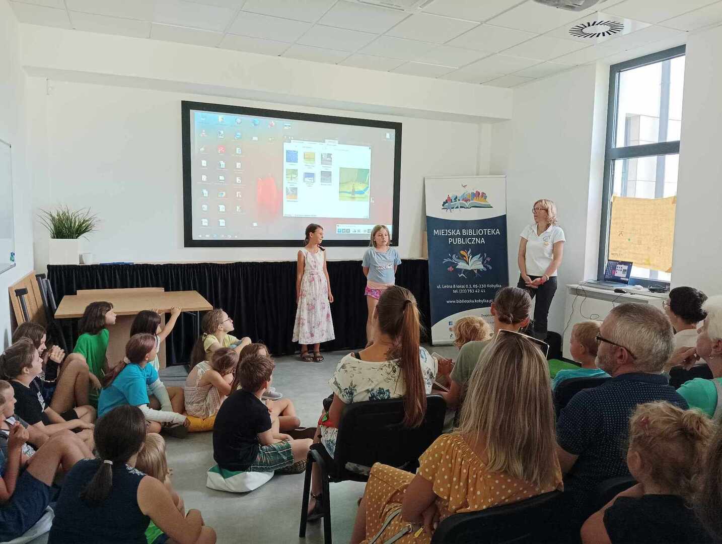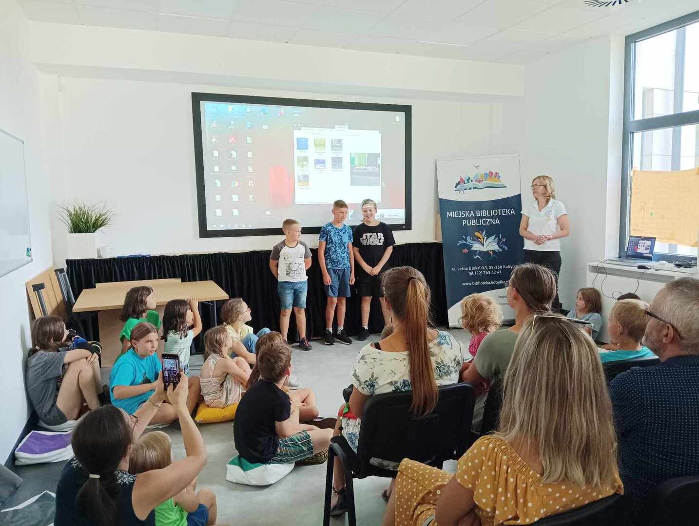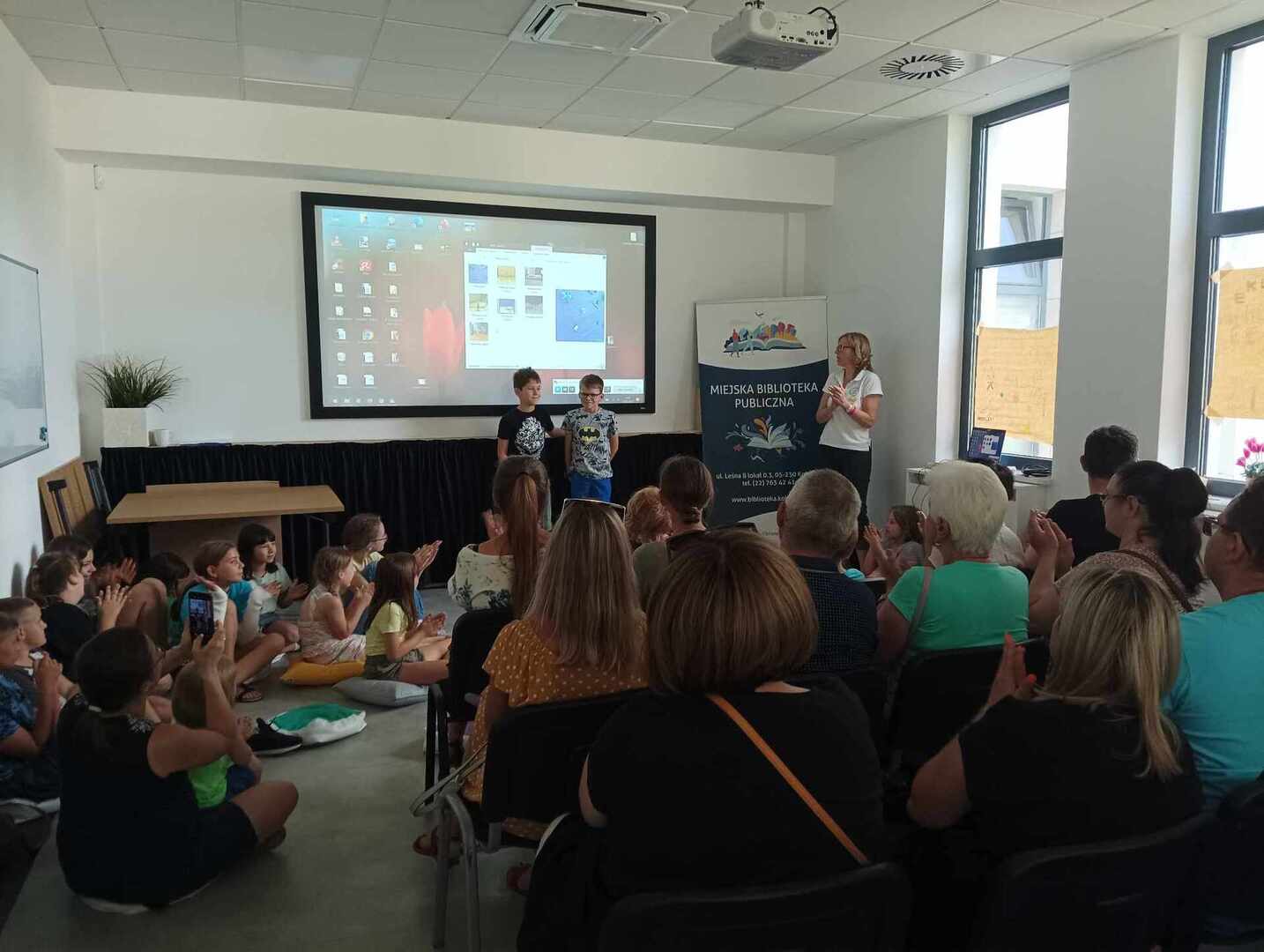 Ostatni dzień II turnusu półkolonii pod hasłem „Okno na innowacje” zakończył się projekcją filmów po klatkowych wykonanych przez uczestników. Zaproszeni goście mieli okazję zobaczyć efekty pracy swoich pociech. Przez pokazem uczestnicy aby się trochę odstresować zapoznali się z aplikacją Duolingo oraz uczestniczyli w ostatnich wspólnych zabawach.
