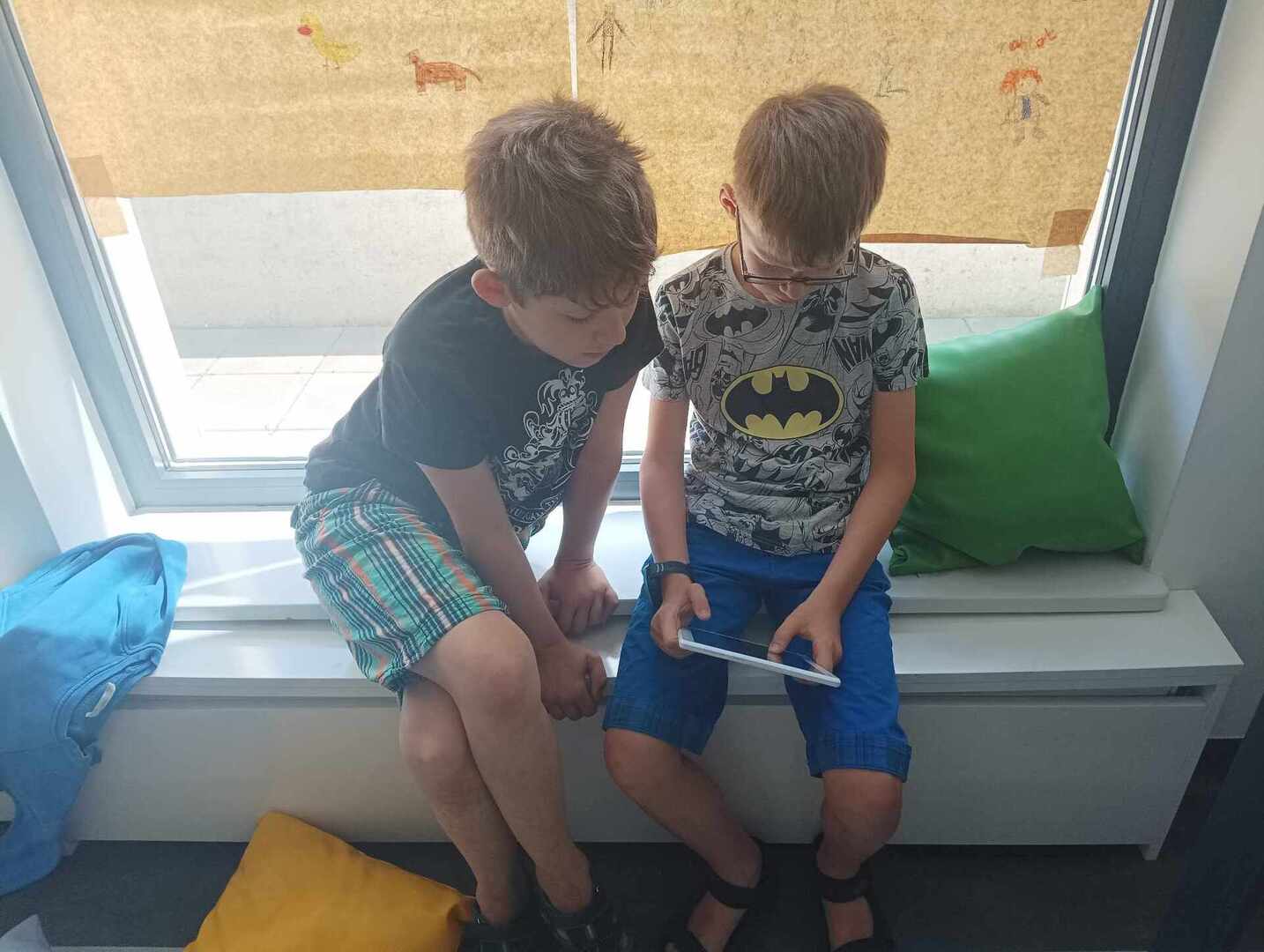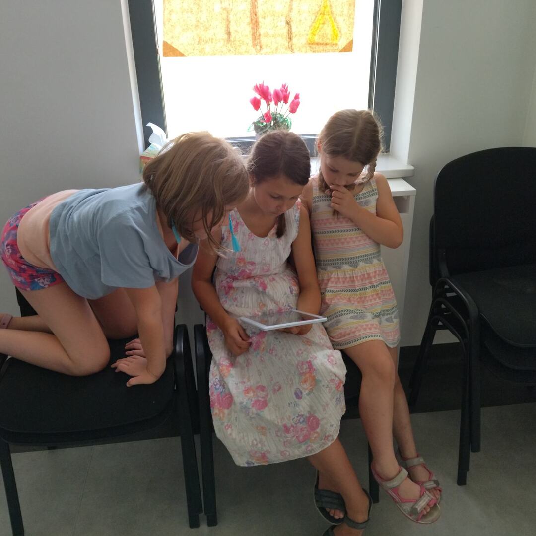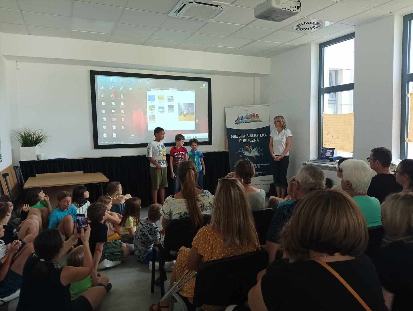 Ostatni dzień II turnusu półkolonii pod hasłem „Okno na innowacje” zakończył się projekcją filmów po klatkowych wykonanych przez uczestników. Zaproszeni goście mieli okazję zobaczyć efekty pracy swoich pociech. Przez pokazem uczestnicy aby się trochę odstresować zapoznali się z aplikacją Duolingo oraz uczestniczyli w ostatnich wspólnych zabawach.