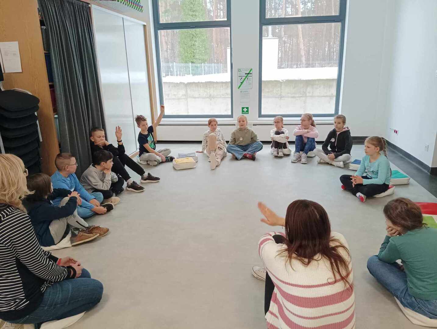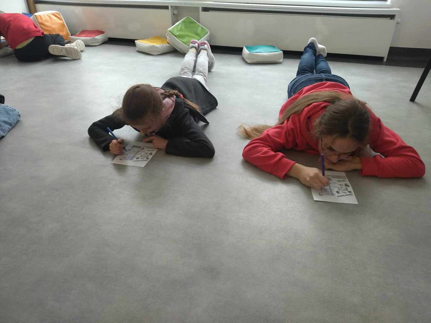 Przed nami pierwszy dzień Ferii w Bibliotece pt. „Jestem bezpieczny, bo wiem...”. Na początku zajęć dzieci opowiedziały coś o sobie a później grupa stworzyła kodeks obowiązujący w czasie zajęć. Uczestnicy mieli okazję opowiedzieć w jakich sytuacjach czuli strach, zagrożone oraz co daje im poczucie bezpieczeństwa. Nie zabrakło również zabaw ruchowych jak i umysłowych.