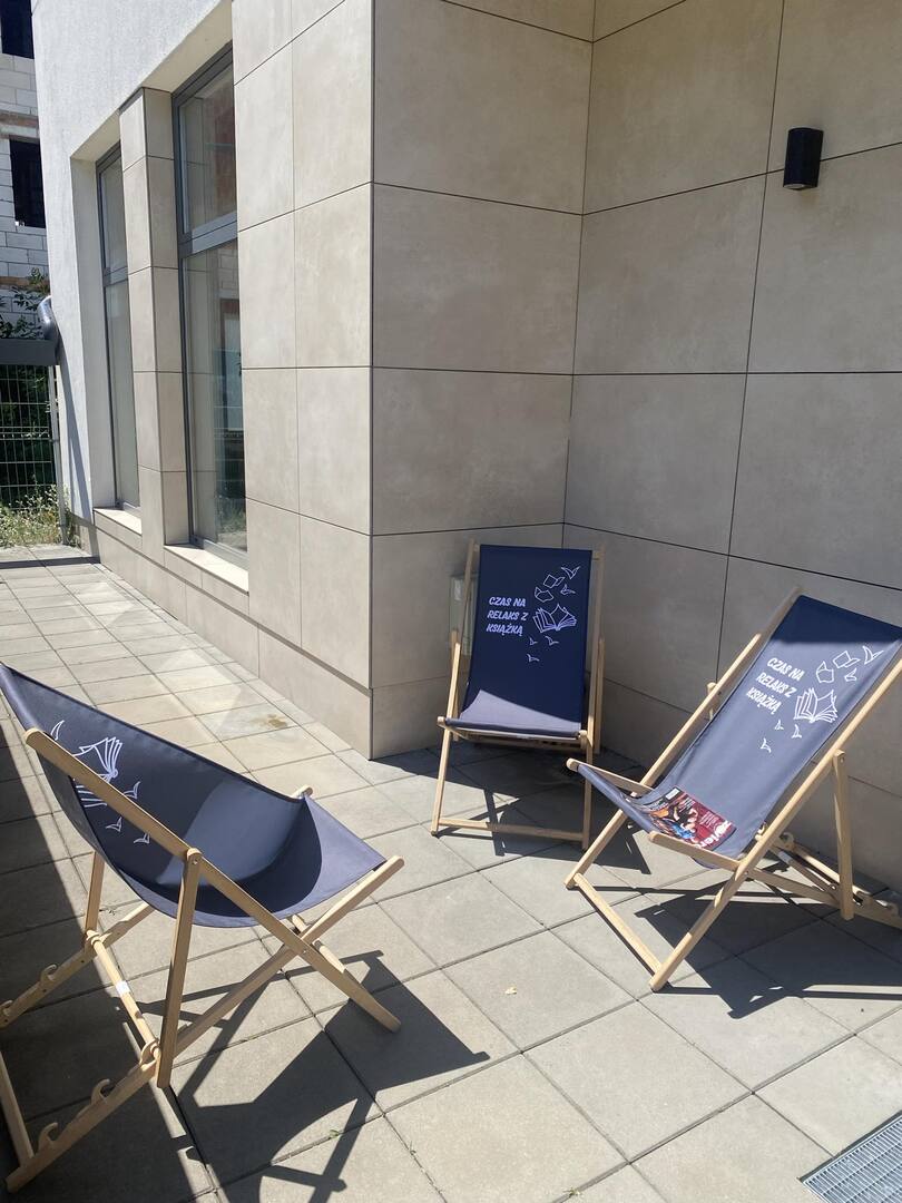 Od dzisiaj możecie cieszyć się naszą strefą relaksu, przy której możecie w spokoju przeczytać ulubioną książkę, sięgnąć po najnowsze numery gazet, porozmawiać z przyjaciółmi i złapać sporą dawkę słońca! Strefa znajduje się na tyłach Biblioteki. Zapraszamy
