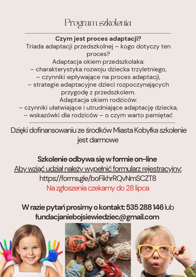 Zapraszamy Rodziców dzieci rozpoczynających swoją przygodę z przedszkolem do udziału w darmowym szkoleniu