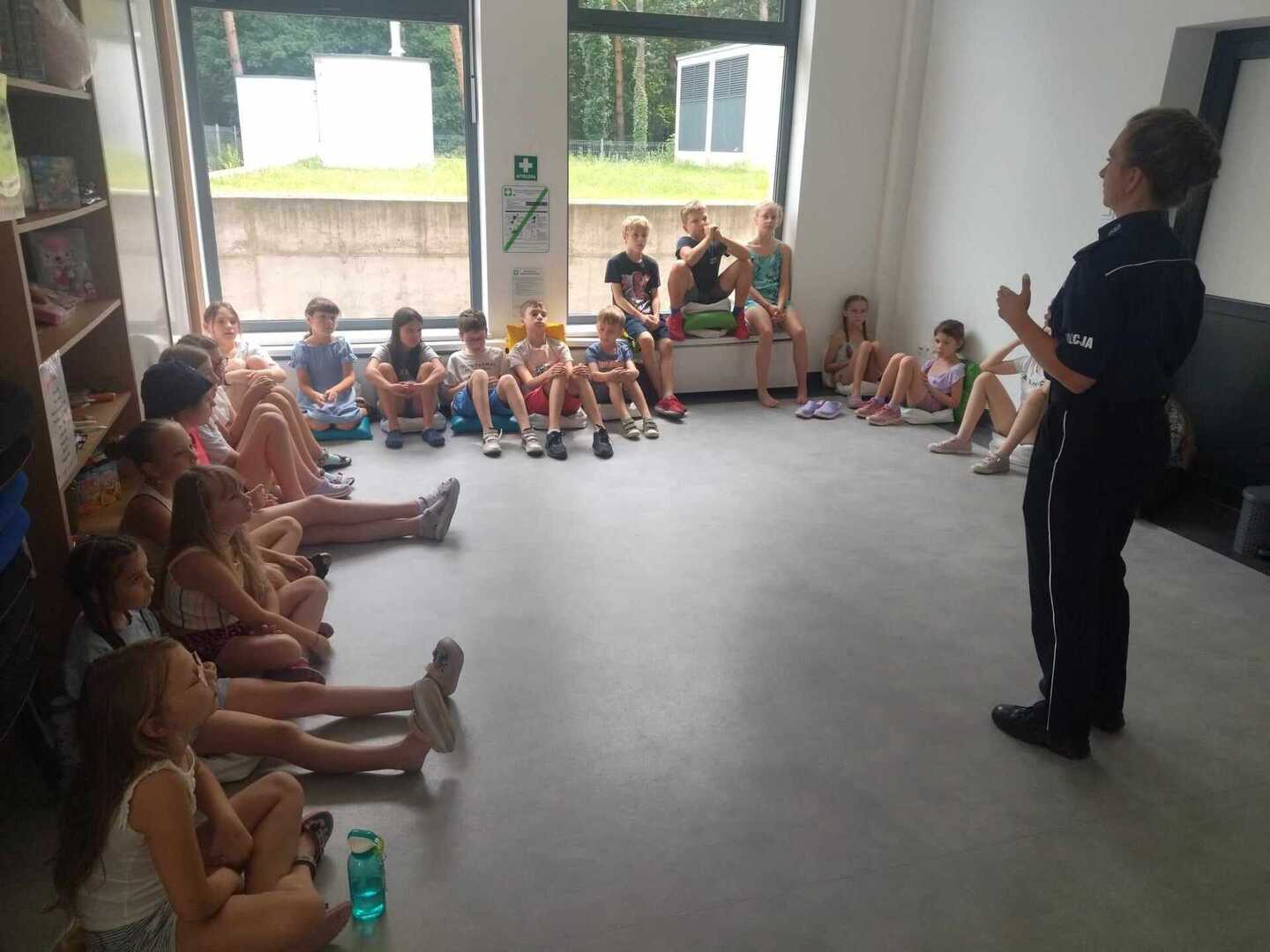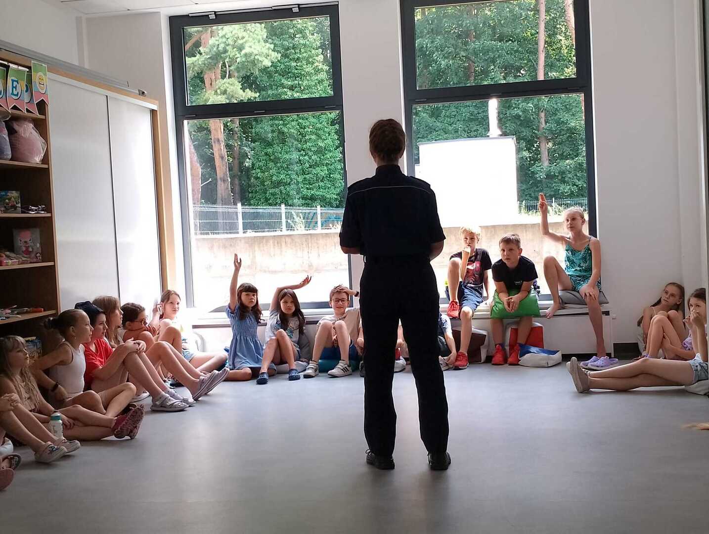 Za nami kolejny dzień półkolonii letnich "Grosz do grosza" . Dziś odwiedziła nas pani funkcjonariuszka policji. Pani przeprowadziła z uczestnikami pogadankę, podczas której przypomniała dzieciom numery alarmowe, to jak właściwie dokonać zgłoszenia zdarzenia, przypominała zasady bezpiecznego pobytu nad wodą oraz zwróciła uwagę, by zachować ostrożność kiedy ktoś wysyła do nas podejrzane pliki i linki. Uczestnicy chętnie słuchali i zadawali pytania. W drugiej połowie dnia dzieci wzięły udział w warsztatach klocków Lego. Uczestnicy budowali skarbonki, sejfy, banki i skarbce. Jutro rodzice będą mogli obejrzeć wystawę wykonanych prac.
