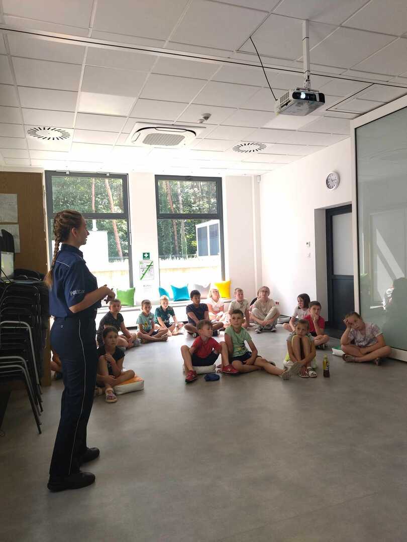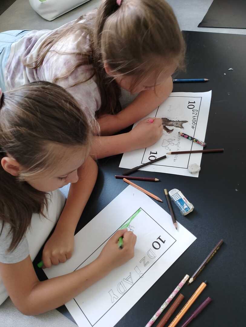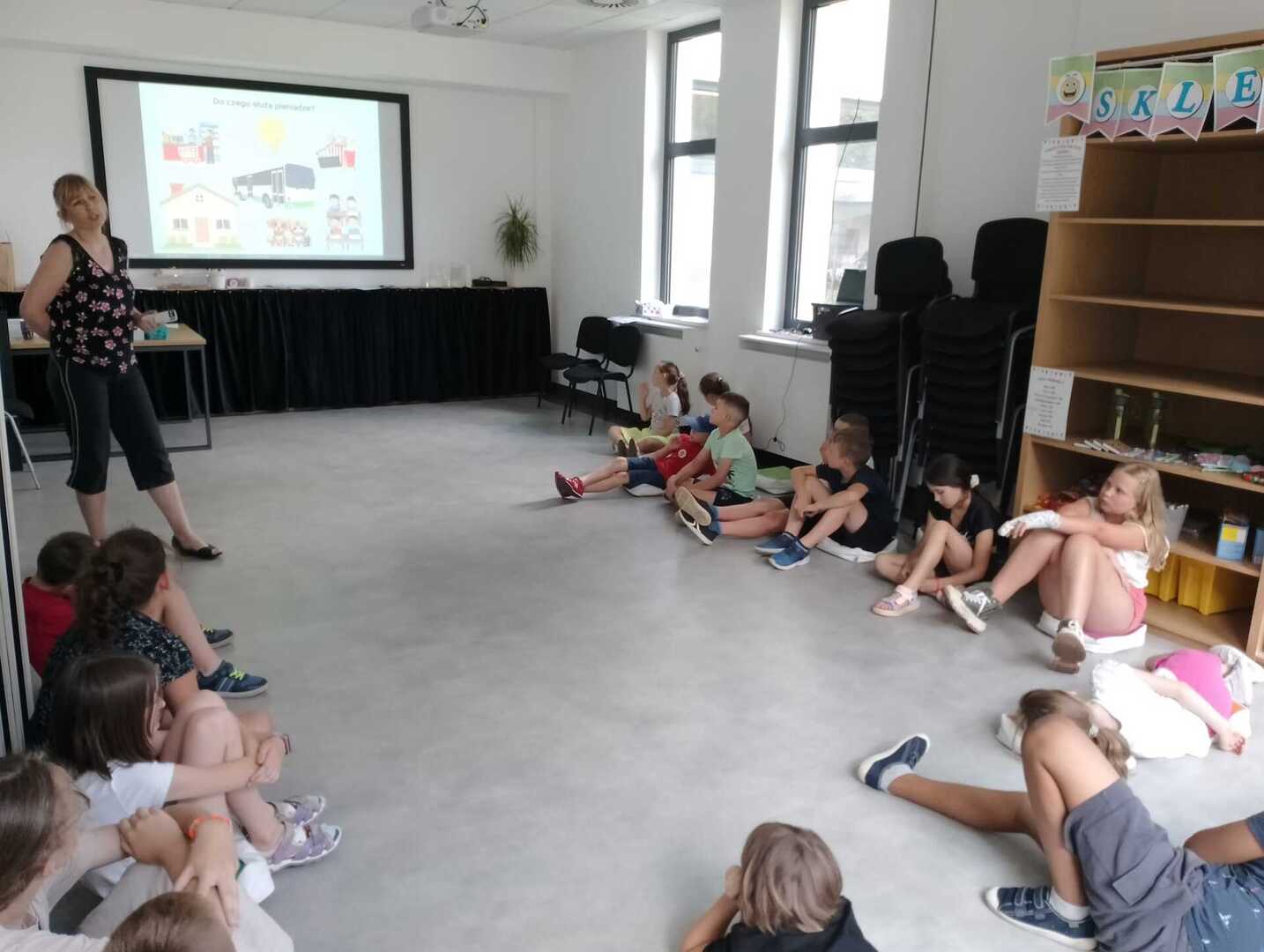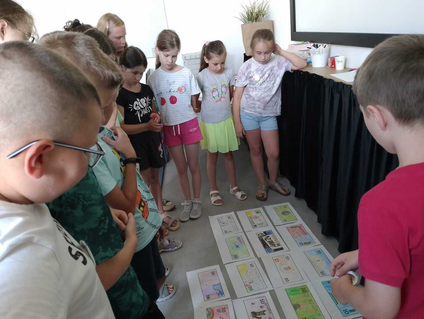 Zajęcia rozpoczęły się od wizyty ważnych gości, a mianowicie odwiedziła nas pani funkcjonariusz policji wraz z panią ze stacji epidemiologicznej. Obie panie przybliżyły uczestnikom zasady bezpiecznego wypoczynku. W drugiej połowie zajęć dzieci wybrały stworzyły własny kodeks zasad, które będą obowiązywały przez najbliższy tydzień. Wymyśliły także nazwę waluty jaką będą się posługiwały a następnie zaprojektowały banknoty. Podczas losowania dzieci wybrały jeden, który będzie funkcjonował podczas trwania półkolonii. Dzieci wzięły również udział w warsztatach "Po co nam pieniądze?"