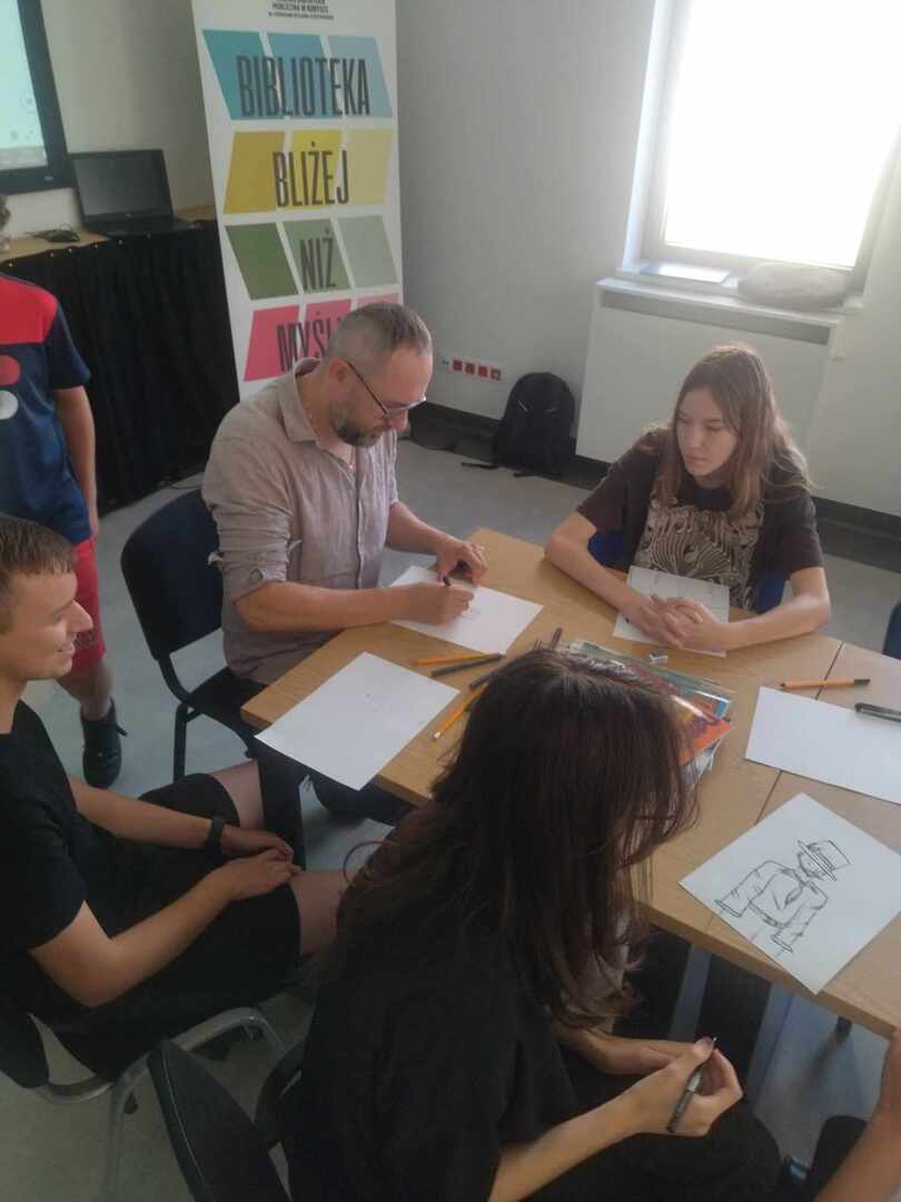 Warsztaty były okazją do poznania niezwykłego świata komiksu i rysunku. Uczestnicy wykonali swoje prace inspirowane i prowadzone kreską Huberta Ronka. Dawał on uczestnikom zajęć wskazówki, w jaki sposób wyrażać emocje zarówno te pozytywne, jak i negatywne, rysując ilustrację czy oddając ją przy pomocy tekstu. Po spotkaniu nie zabrakło oczywiście autografów i rysografów.