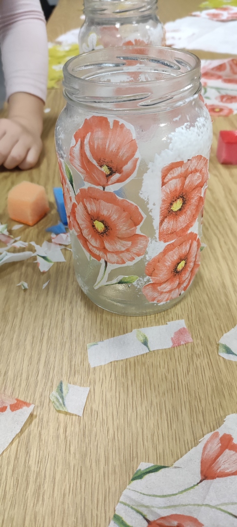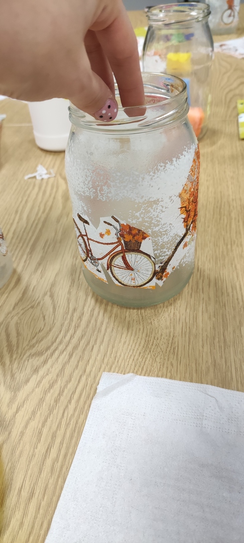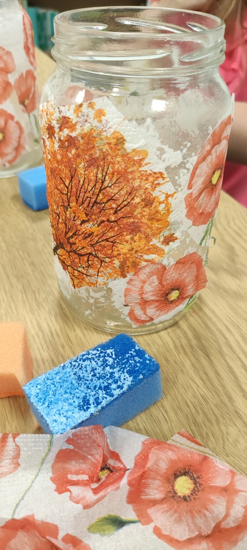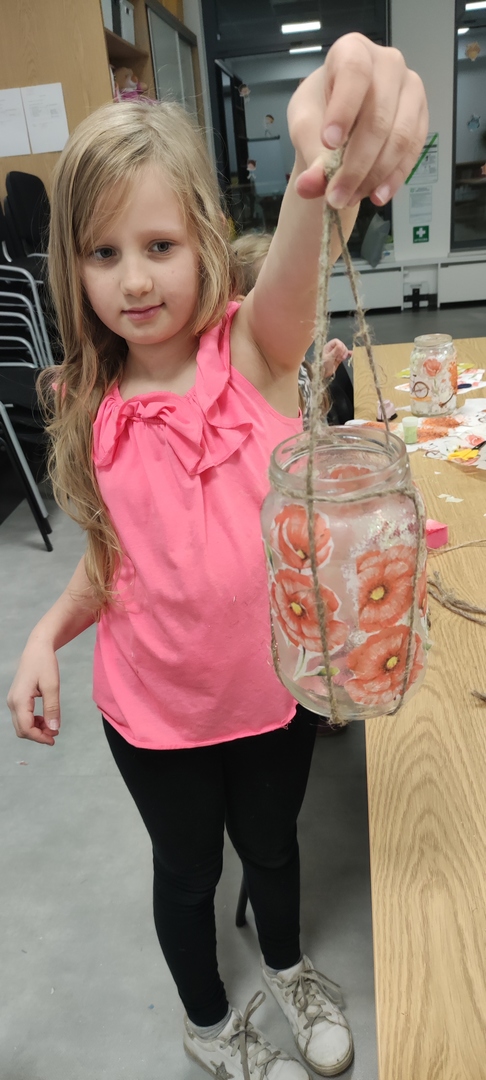 Dzisiaj na zajęciach, pomimo małej ilości uczestników to udało Nam się wykonać lampiony techniką decoupage.