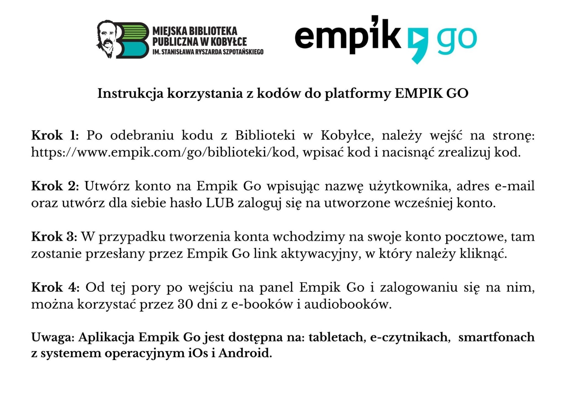 Od 02 stycznia 2025 roku Biblioteka w Kobyłce udostępniać będzie dla swoich Czytelników kody do e-booków oraz audiobooków na platformie Empik Go!