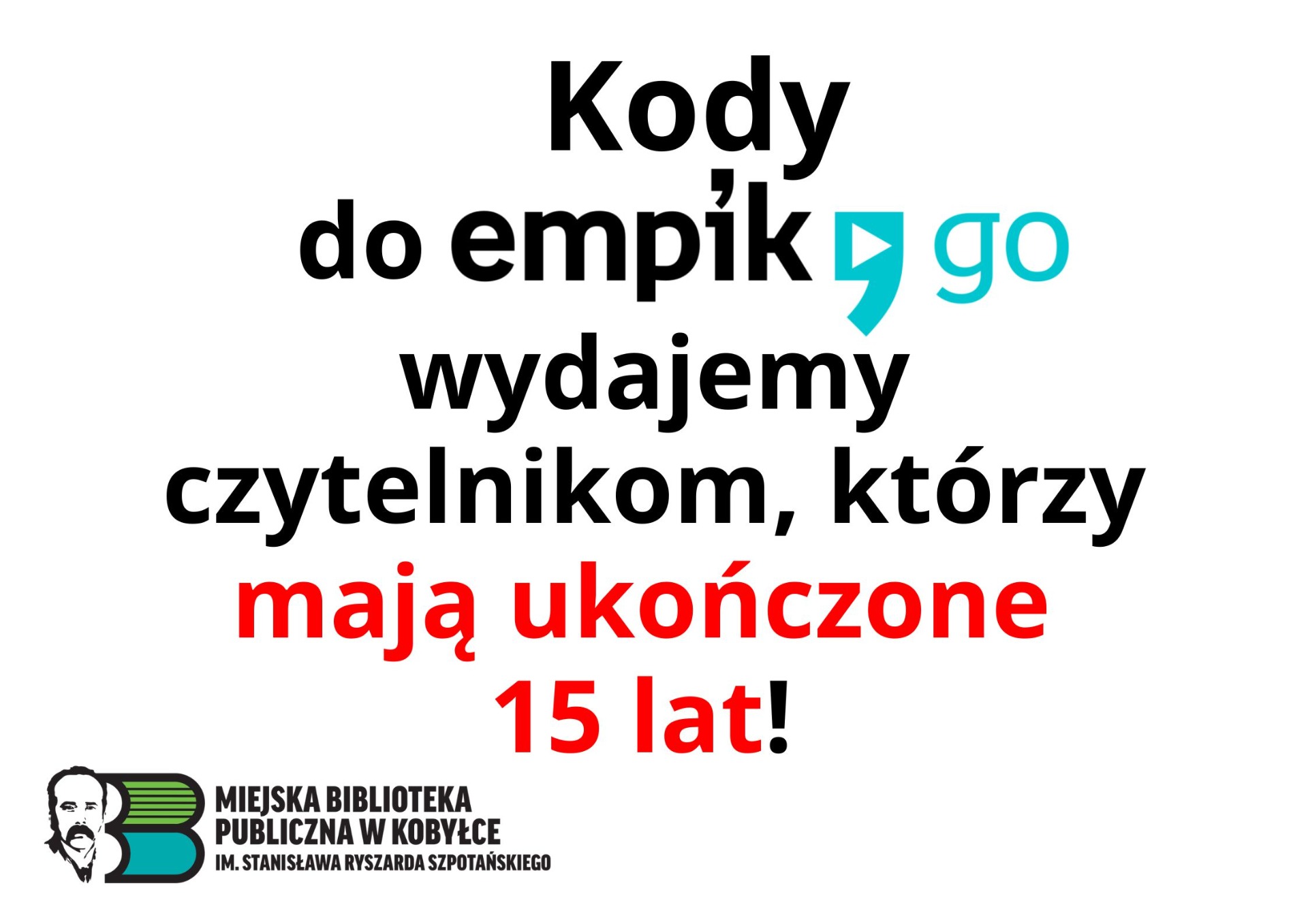 Drodzy Czytelnicy, umowa dotycząca dystrybucji kodów EmpikGo, zawarta przez Bibliotekę, zobowiązuje nas do przekazywania kodów zasilających osobom od 15 roku życia. W związku z tym Czytelnicy poniżej 15 lat nie mogą korzystać z puli darmowych kodów.