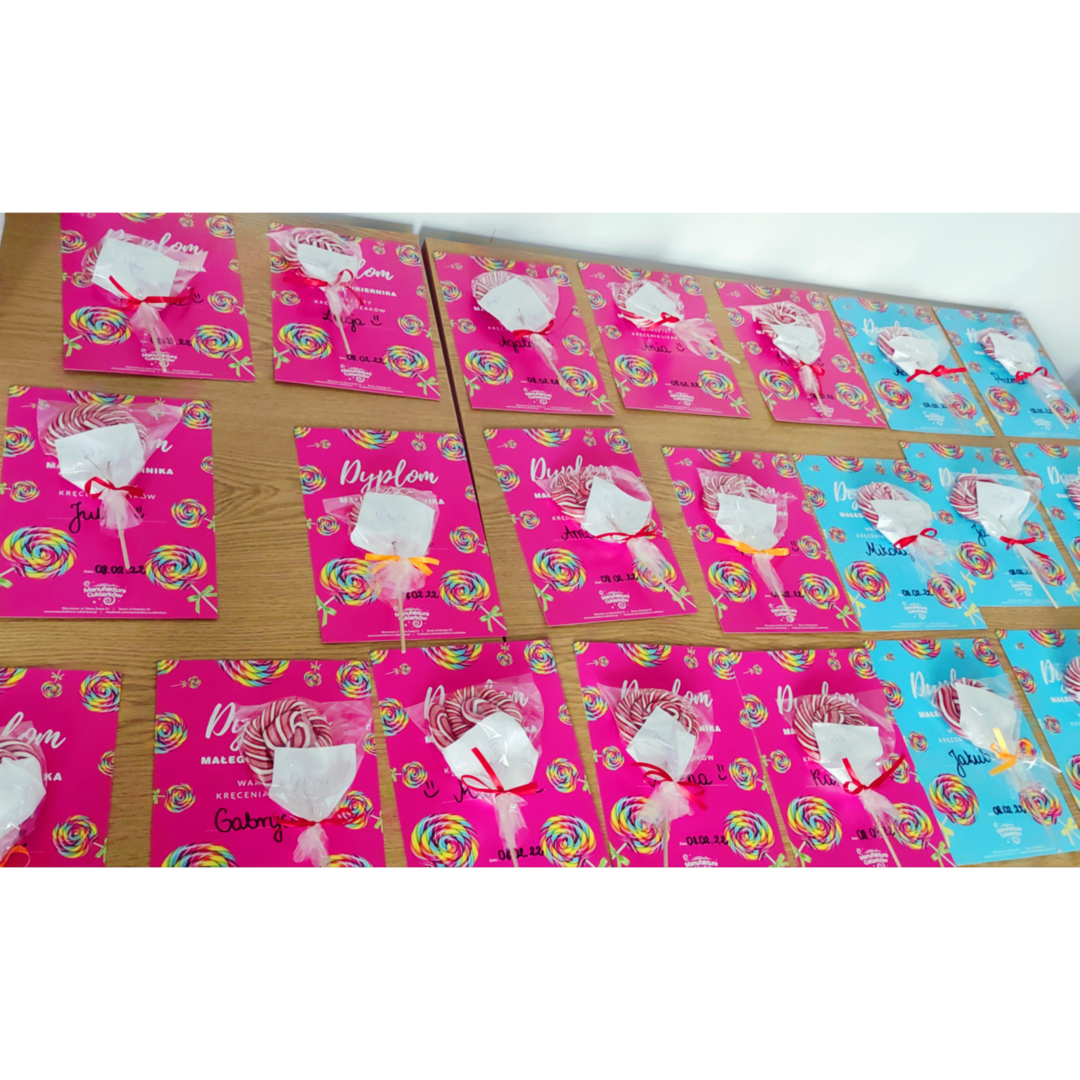Na zakończenie warsztatów, każdy otrzymał dyplom oraz swoje dzieła – piękne, zakręcone lizaki. Było miło i słodko!
