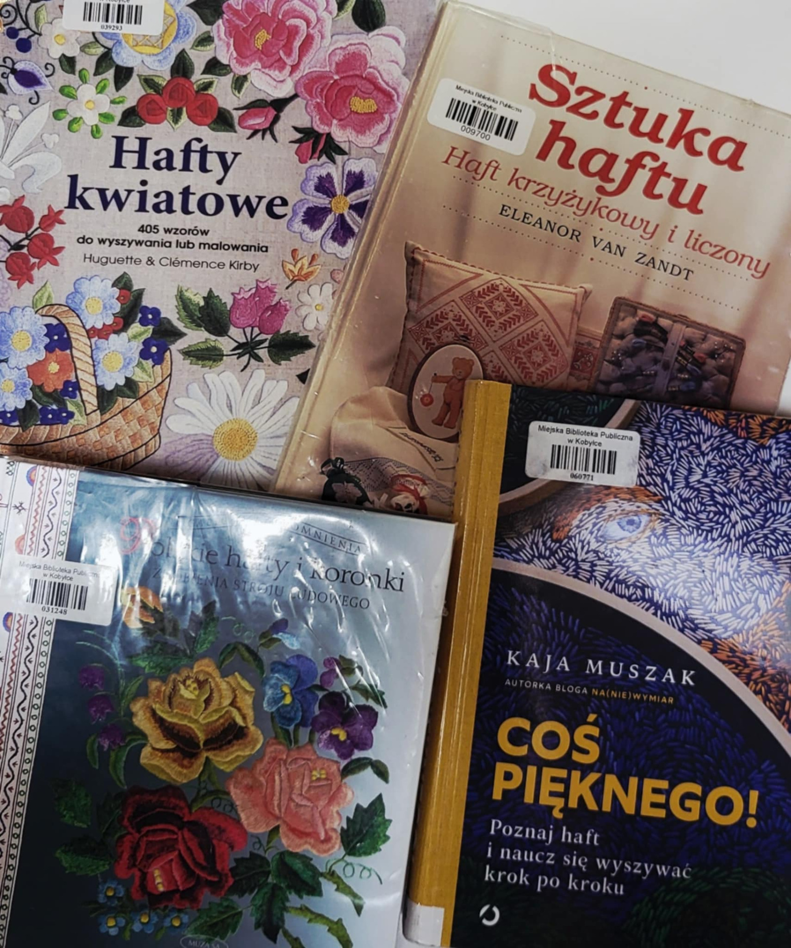 W bibliotece dostępne są książki, w których znajdziecie pomysły na wzory i ściegi jeśli nabraliście ochoty na chwycenie za igłę!!!