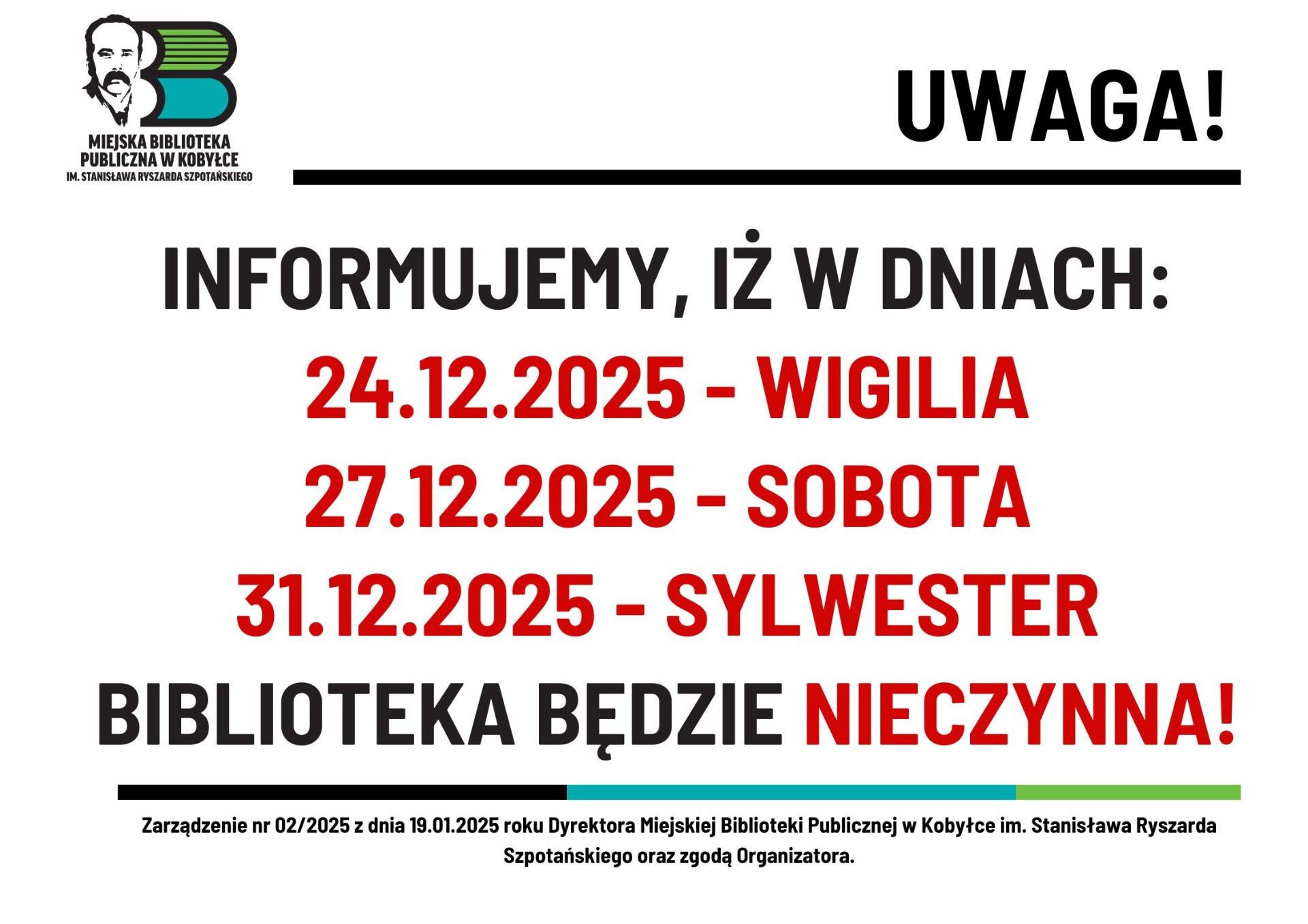Biblioteka będzie nieczynna!