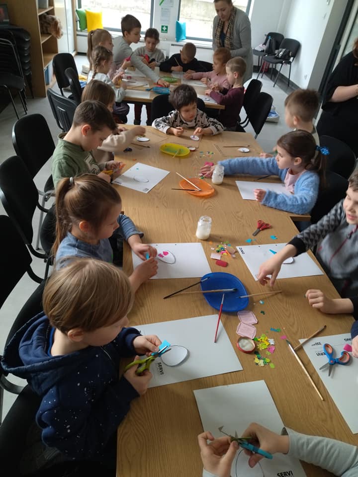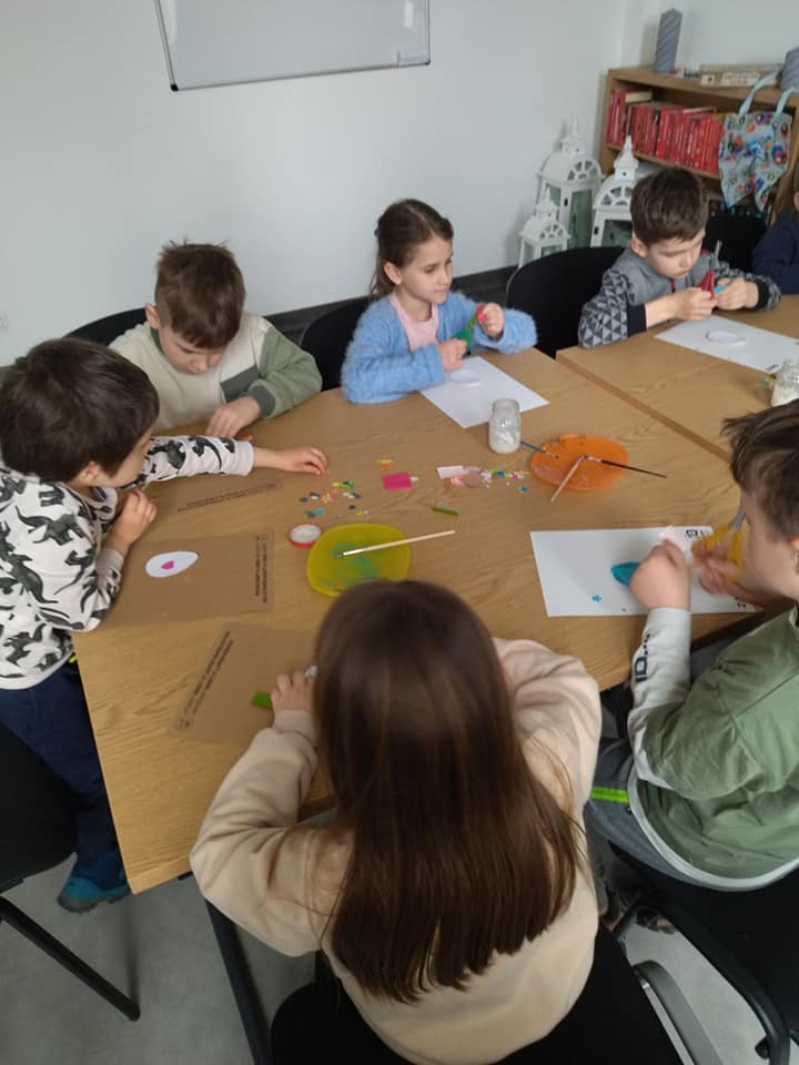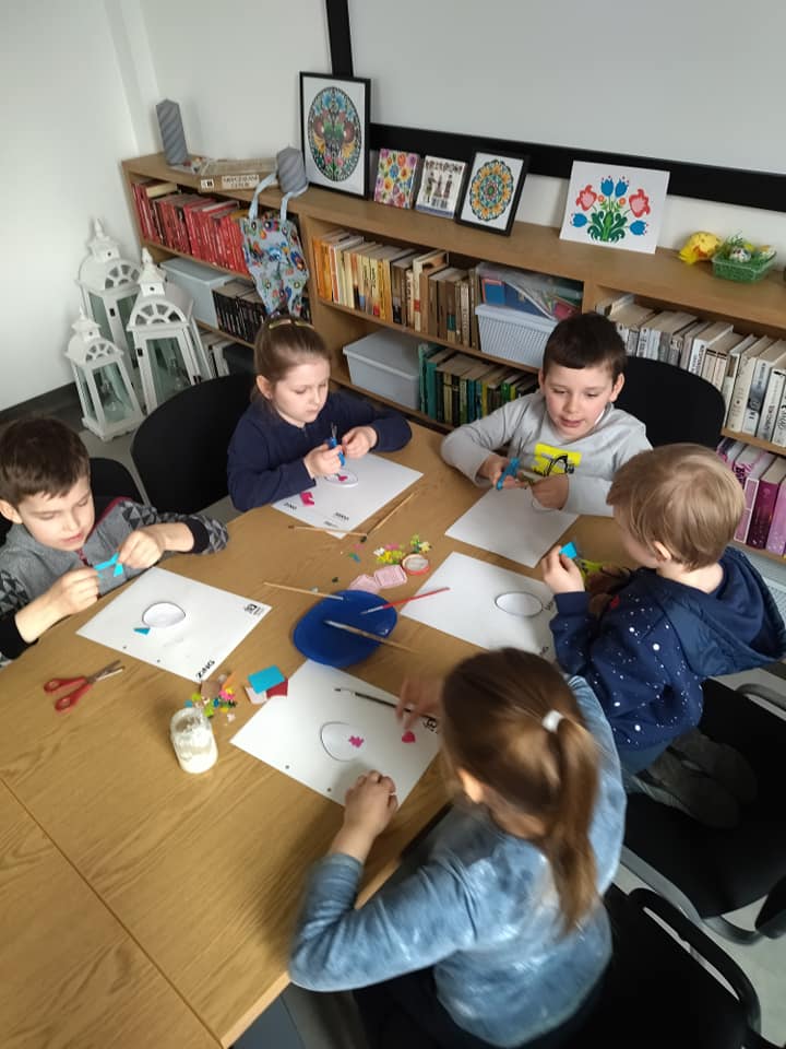 Kwiecień plecień bo przeplata... I dziś zdecydowanie taka pogoda za oknem- a skoro kwiecień to i święta tuż, tuż... Wiedzą o tym najlepiej dzieciaki, które licznie biorą udział w wycinankowych warsztatach. Pozdrawiamy wszystkich serdecznie i wiosennie.