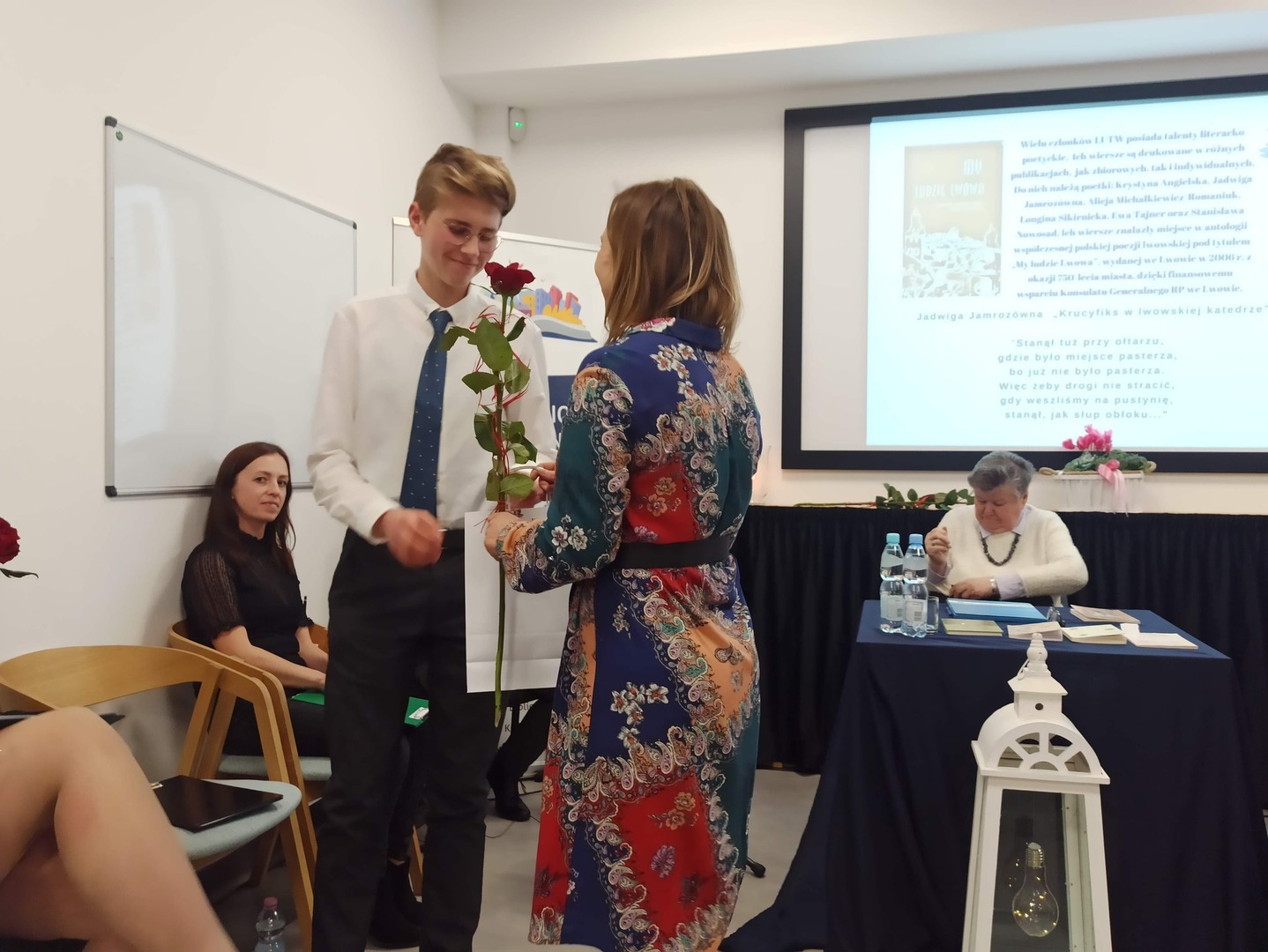Dziękujemy naszym prelegentom, czyli Pani Teresie Dutkiewicz - wiceprezes Federacji Organizacji Polskich na Ukrainie, redaktor naczelnej czasopisma Federacji „Nasze Drogi” oraz Panu Profesorowi Oskarowi Czarnikowi - urodzonemu we Lwowie polskiemu literaturoznawcy, profesorowi nauk humanistycznych - za przybliżenie nam tematu obecności polskiej poezji na Ukrainie. Prezentowane w trakcie wieczoru utwory przedstawiały niezwykły poziom artystyczny i wyjątkową wrażliwość poetycką.