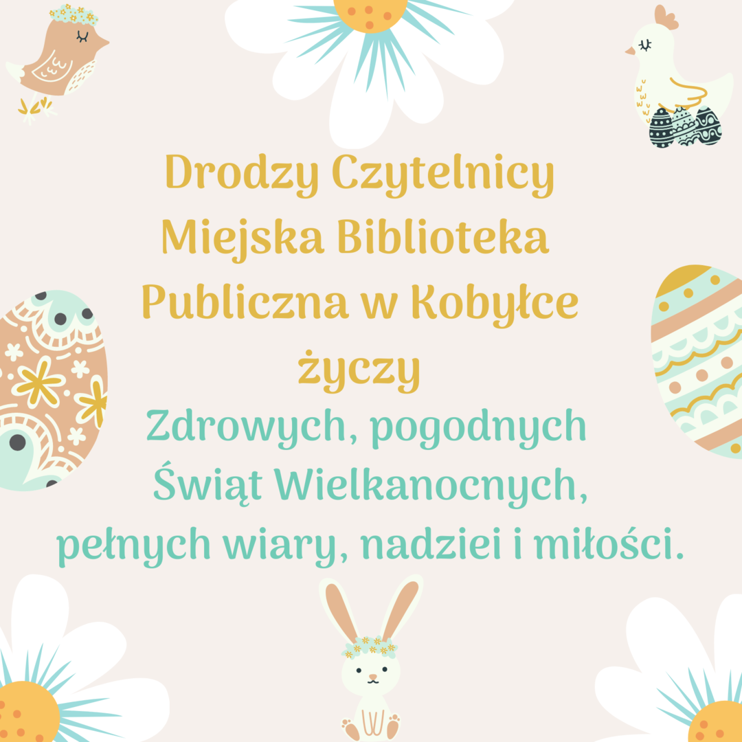 Miejska Biblioteka Publiczna w Kobyłceżyczy WamZdrowych, pogodnych Świąt Wielkanocnych,pełnych wiary, nadziei i miłości.