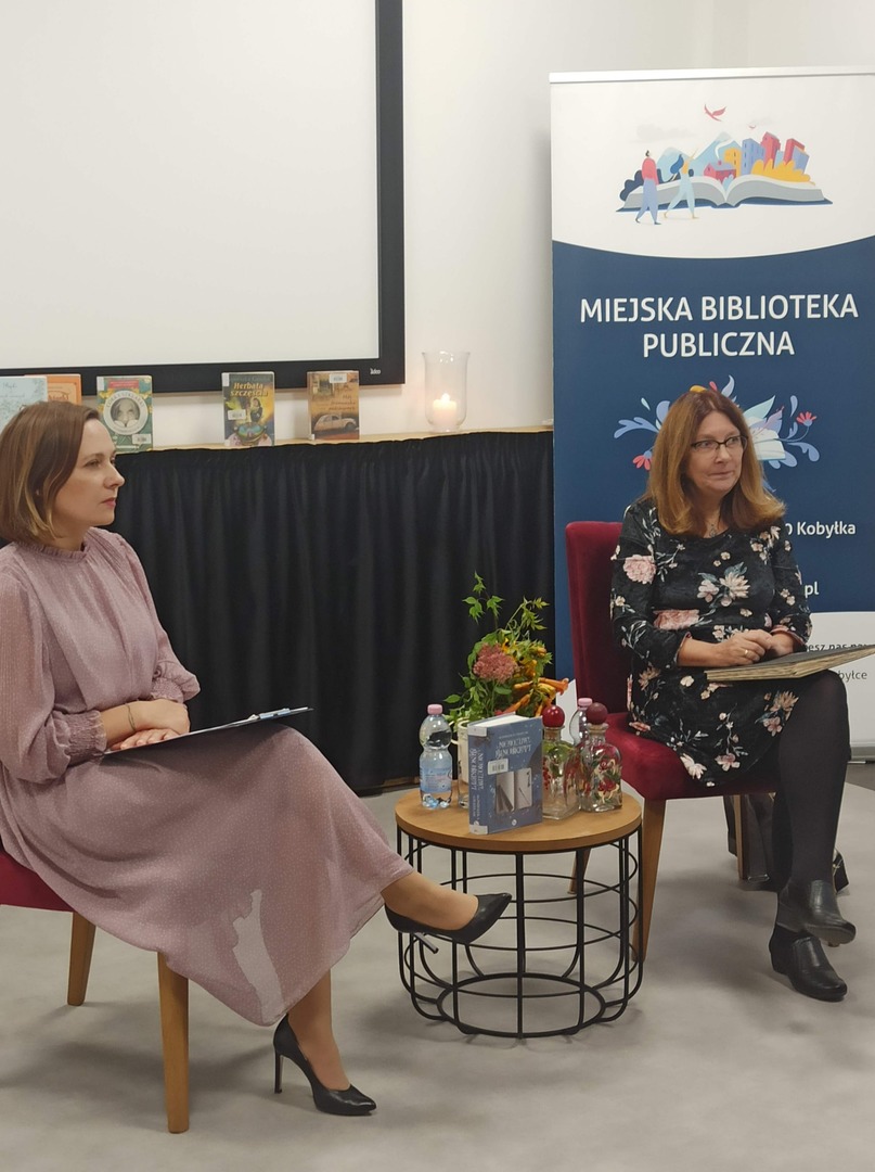 W piątek 16 września gościliśmy w Bibliotece Agnieszkę Grzelak - pisarkę, malarkę, jednym słowem kobietę wielu talentów. Rozmawialiśmy o książkach, pisaniu, inspiracjach i sztuce. Mówiliśmy o tym co ważne w literaturze, o kondycji czytelnictwa i o Kobyłce. Nasi uczestnicy mieli okazję porozmawiać o książkach z dorobku Agnieszki oraz zobaczyć prace naszego Gościa m.in. butelki przyozdobione motywami roślinnymi, szkicowniki i małe rękodzieła. Zachęcamy do zajrzenia na bloga Agnieszki http://agnieszkagrzelakart.blogspot.com