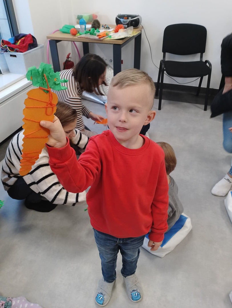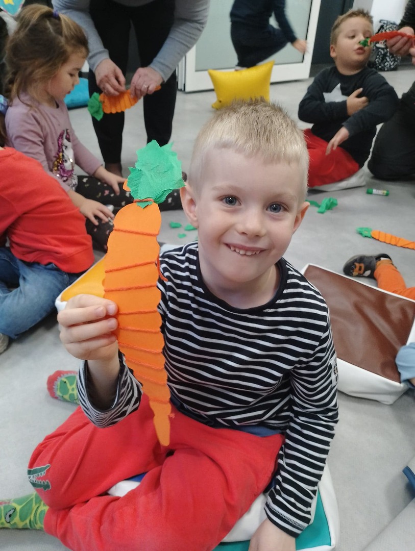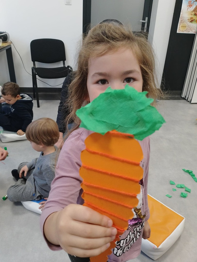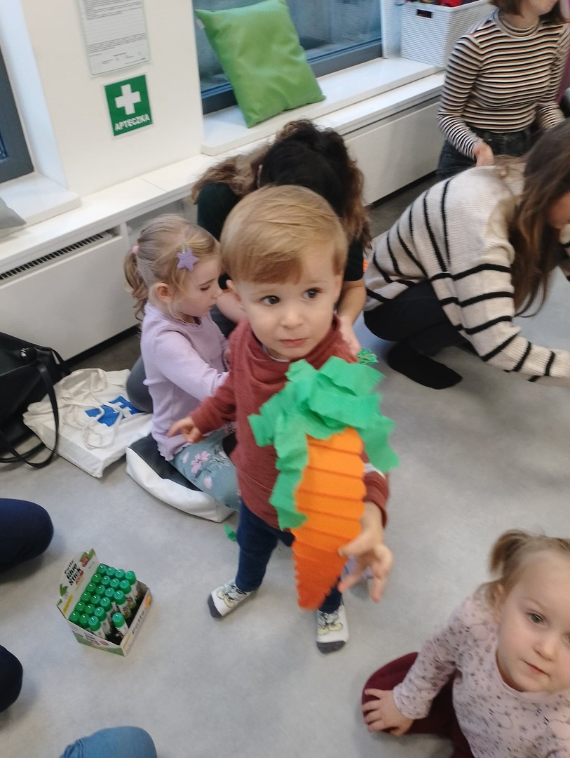 Jesteśmy po kolejnych zajęciach "Niedźwiadek Opowiadek czyta dzieciom " tym razem tematem naszego spotkania były warzywa. Dzieci wysłuchały bajki "Za dużo marchewek", każde z dzieci miało okazję degustacji marchewki. Ponad to bawiliśmy się w różnego typu zabawy ruchowe np.: "Na dywanie siedzi jeż", "Balonik", tańczyliśmy do piosenki "Ja gram na gitarze" a do tego zrobiliśmy tor przeszkód. Innymi słowy świetnie się bawiliśmy. Jeśli chcesz wziąć udział w kolejnych zajęciach zapraszamy do zapisu osobiście w bibliotece lub pod nr telefonu 22 763-42-42. Kolejne zajęcia odbędą się 4.11.2022 zaczynamy o 16:00. Zajęcia trwają godzinę zegarową.