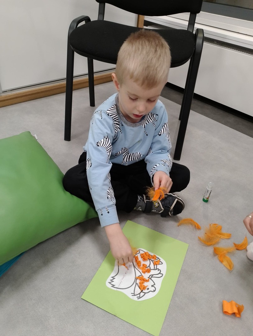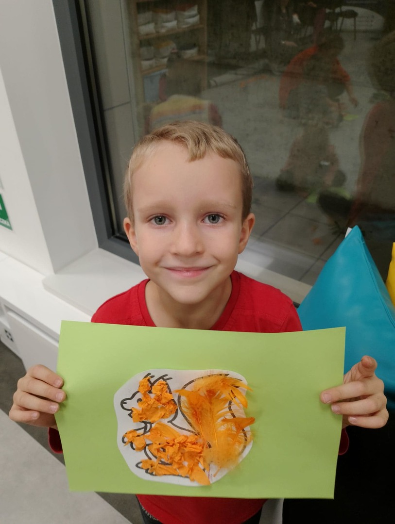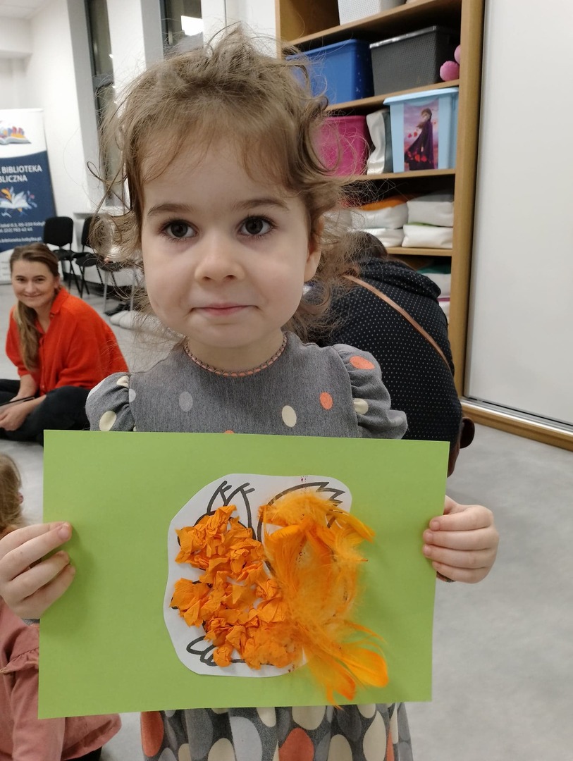 Wczoraj po raz kolejny spotkaliśmy się na zajęciach Niedźwiadek Opowiadek czyta dzieciom . Zaczęliśmy od małej gimnastyki, by następnie przejść do zabaw ruchowych. W przerwach na odpoczynek siedząc na dywanie poznawaliśmy kształty i rozmawialiśmy o odpowiednim stroju na deszczową pogodę. Przeczytaliśmy książkę "Wiewiórki, które nie chciały się dzielić" a na zakończenie wykonaliśmy wiewiórki z bibuły i pomarańczowych piórek. Zapraszamy na kolejne zajęcia 25.11 o godz. 16:00. Zapisy w bibliotece pod nr. 22 763-42-41 lub osobiście. Zapraszamy.