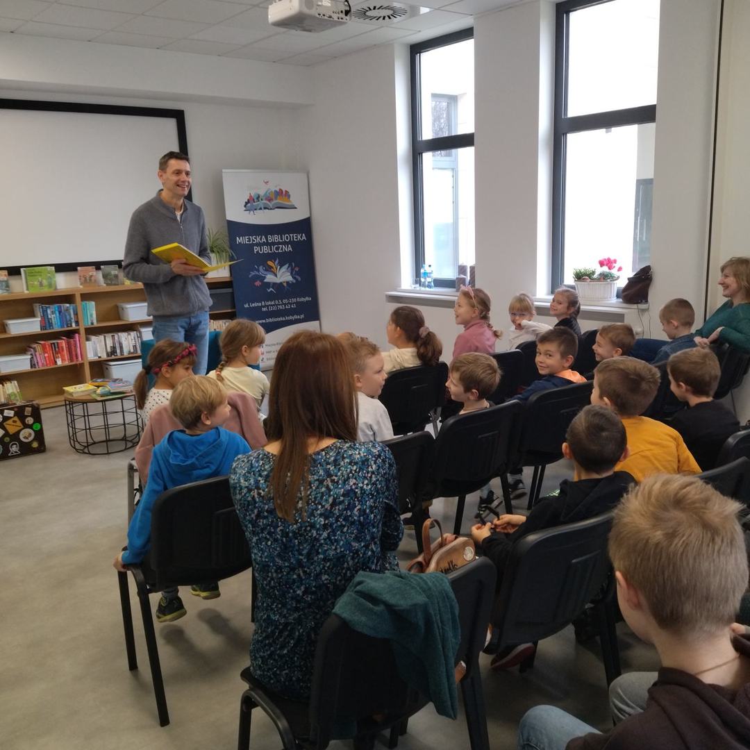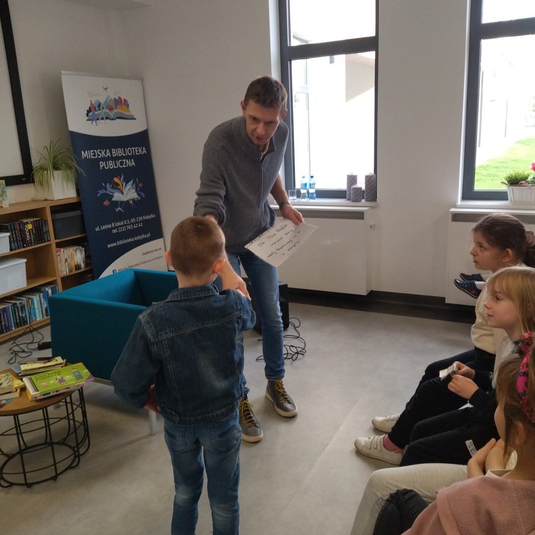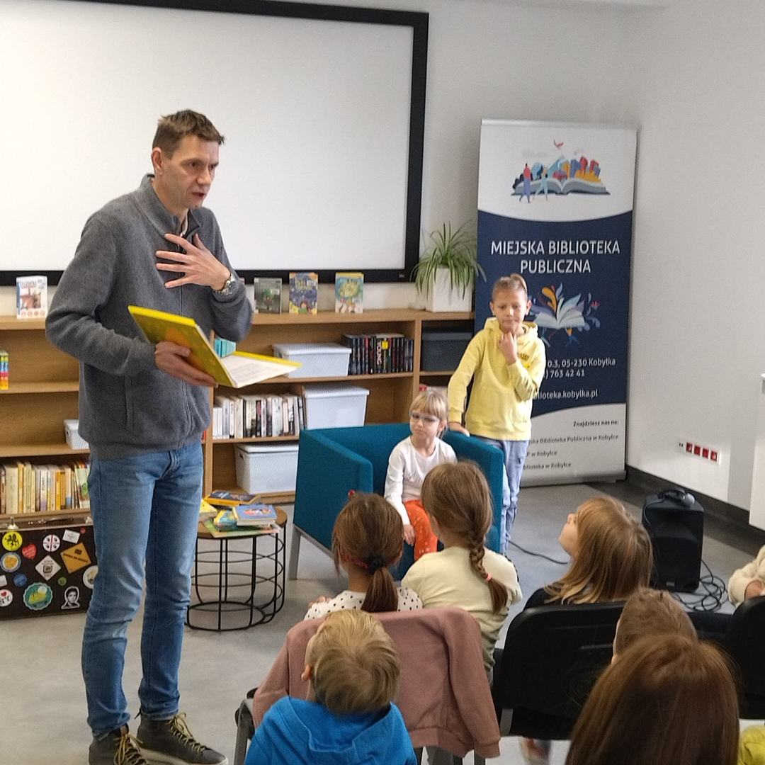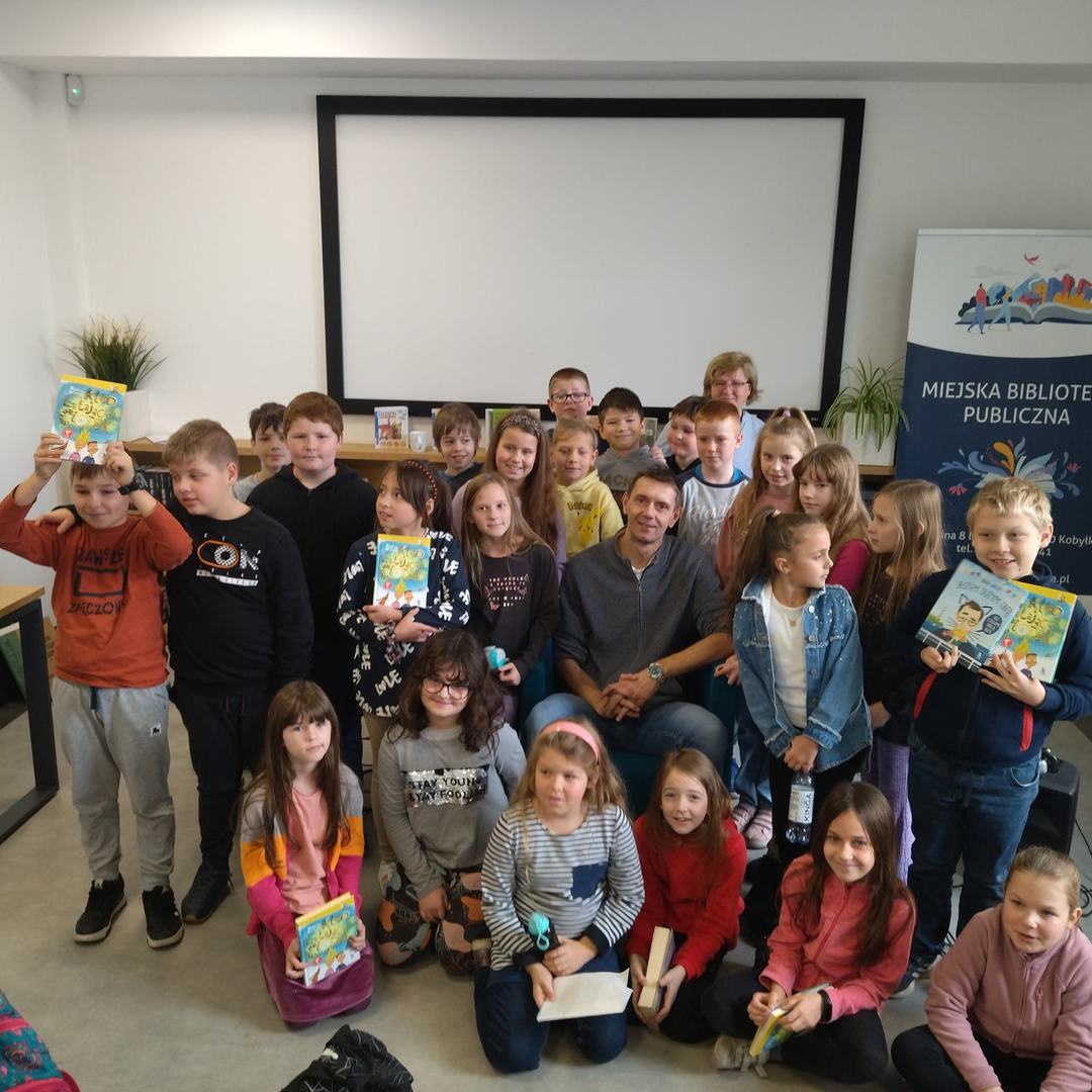 Mieliśmy dzisiaj niebywały zaszczyt gościć Rafała Witka - autora wierszy i opowiadań dla dzieci. Pisarz zaprezentował swoją twórczość w sposób niezwykle ekspresyjny i humorystyczny. Godzinne spotkanie, w którym udział wzięli uczniowie Zespołu Szkół Publicznych nr 2 w Kobyłce, wypełnione było kreatywną zabawą i twórczym myśleniem. Autor chętnie odpowiadał na pytania związane z jego osobą i zawodem. Pan Rafał udowodnił, że czytanie to doskonała zabawa, która pozwala zorganizować sobie wolny czas, tak, że nie ma miejsca na nudę, nawet jeśli jest „zero Internetu i innych nowoczesnych gadżetów”. Uśmiechnięte buzie małych czytelników świadczyły o tym, że spotkanie było bardzo wyjątkowe a deklaracja jednego z uczestników: "dzięki Panu zacznę czytać książki" chyba mówi sama za siebie. Bardzo dziękujemy za wizytę Panu Rafałowi Witek i do miłego zobaczenia!