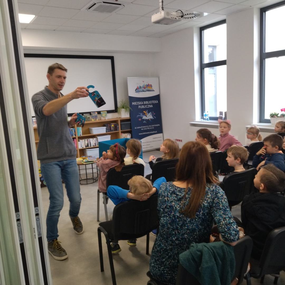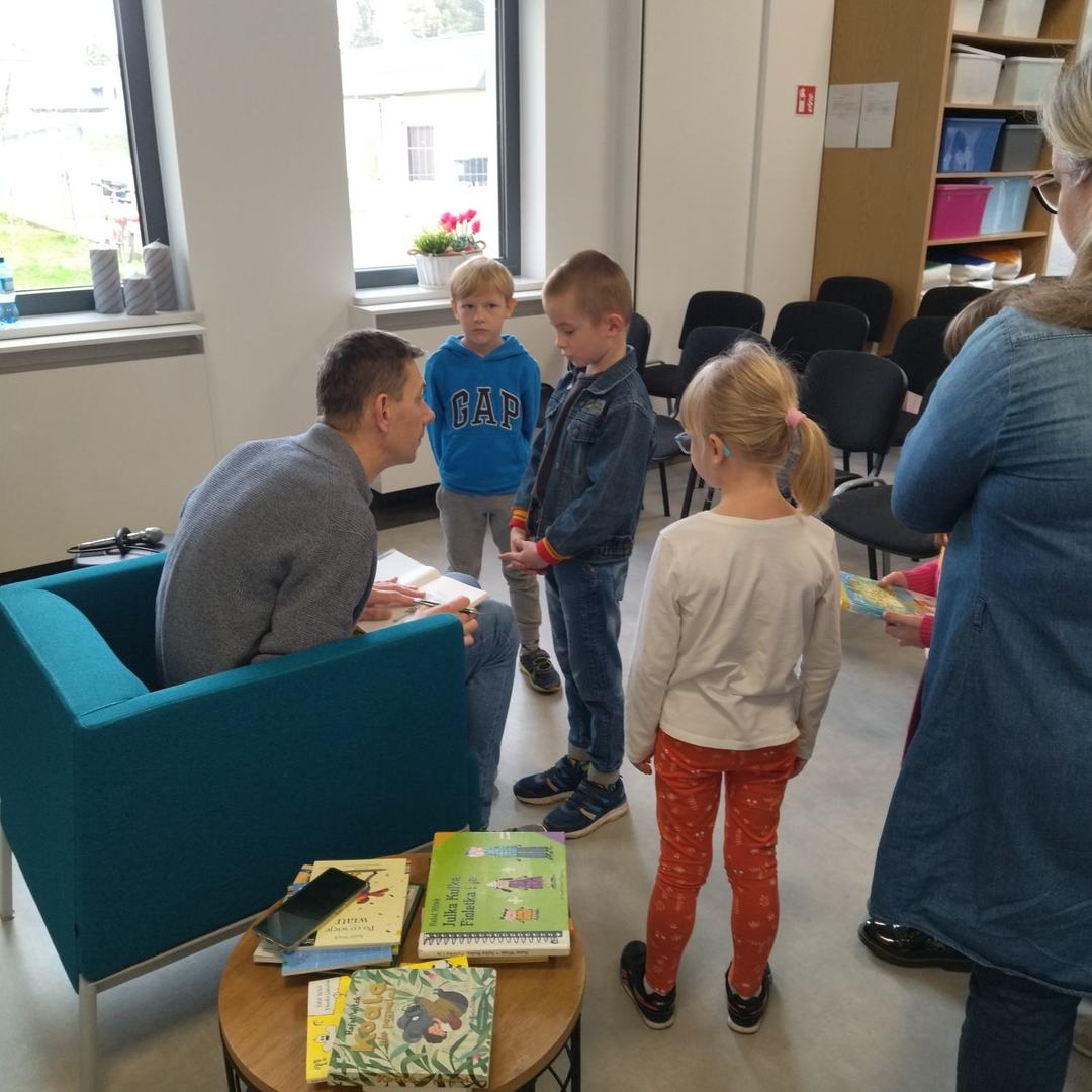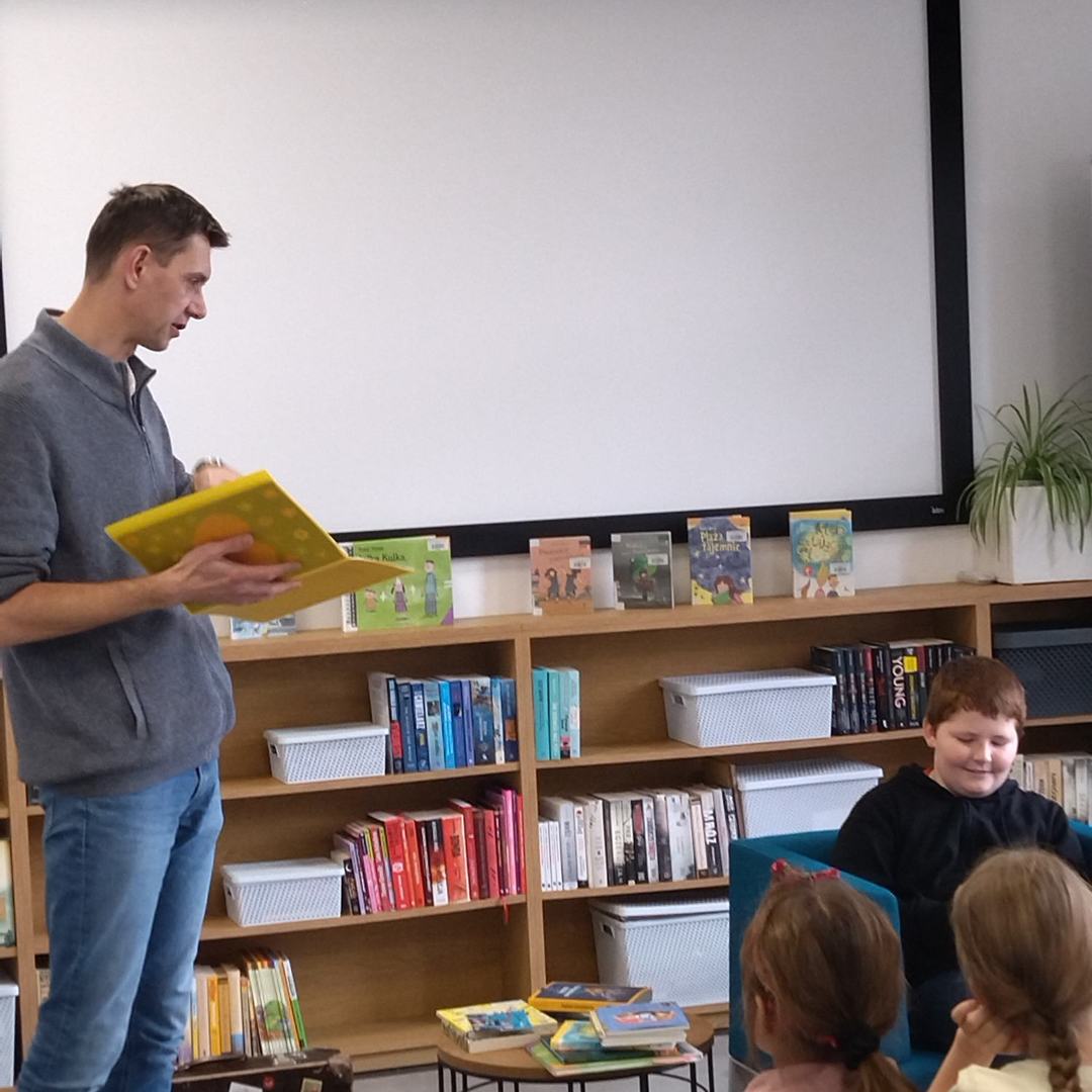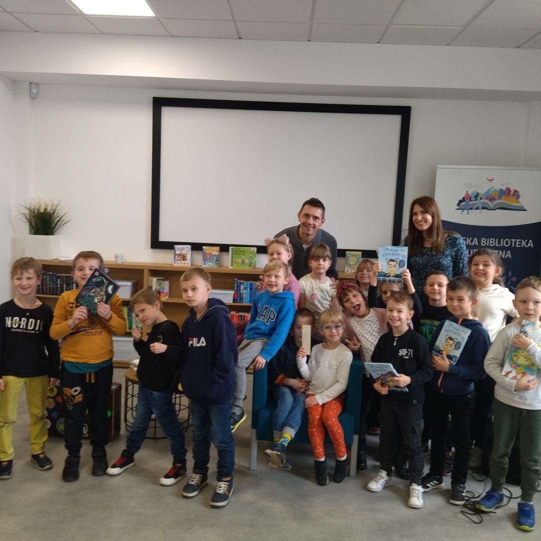 Mieliśmy dzisiaj niebywały zaszczyt gościć Rafała Witka - autora wierszy i opowiadań dla dzieci. Pisarz zaprezentował swoją twórczość w sposób niezwykle ekspresyjny i humorystyczny. Godzinne spotkanie, w którym udział wzięli uczniowie Zespołu Szkół Publicznych nr 2 w Kobyłce, wypełnione było kreatywną zabawą i twórczym myśleniem. Autor chętnie odpowiadał na pytania związane z jego osobą i zawodem. Pan Rafał udowodnił, że czytanie to doskonała zabawa, która pozwala zorganizować sobie wolny czas, tak, że nie ma miejsca na nudę, nawet jeśli jest „zero Internetu i innych nowoczesnych gadżetów”. Uśmiechnięte buzie małych czytelników świadczyły o tym, że spotkanie było bardzo wyjątkowe a deklaracja jednego z uczestników: "dzięki Panu zacznę czytać książki" chyba mówi sama za siebie. Bardzo dziękujemy za wizytę Panu Rafałowi Witek i do miłego zobaczenia!