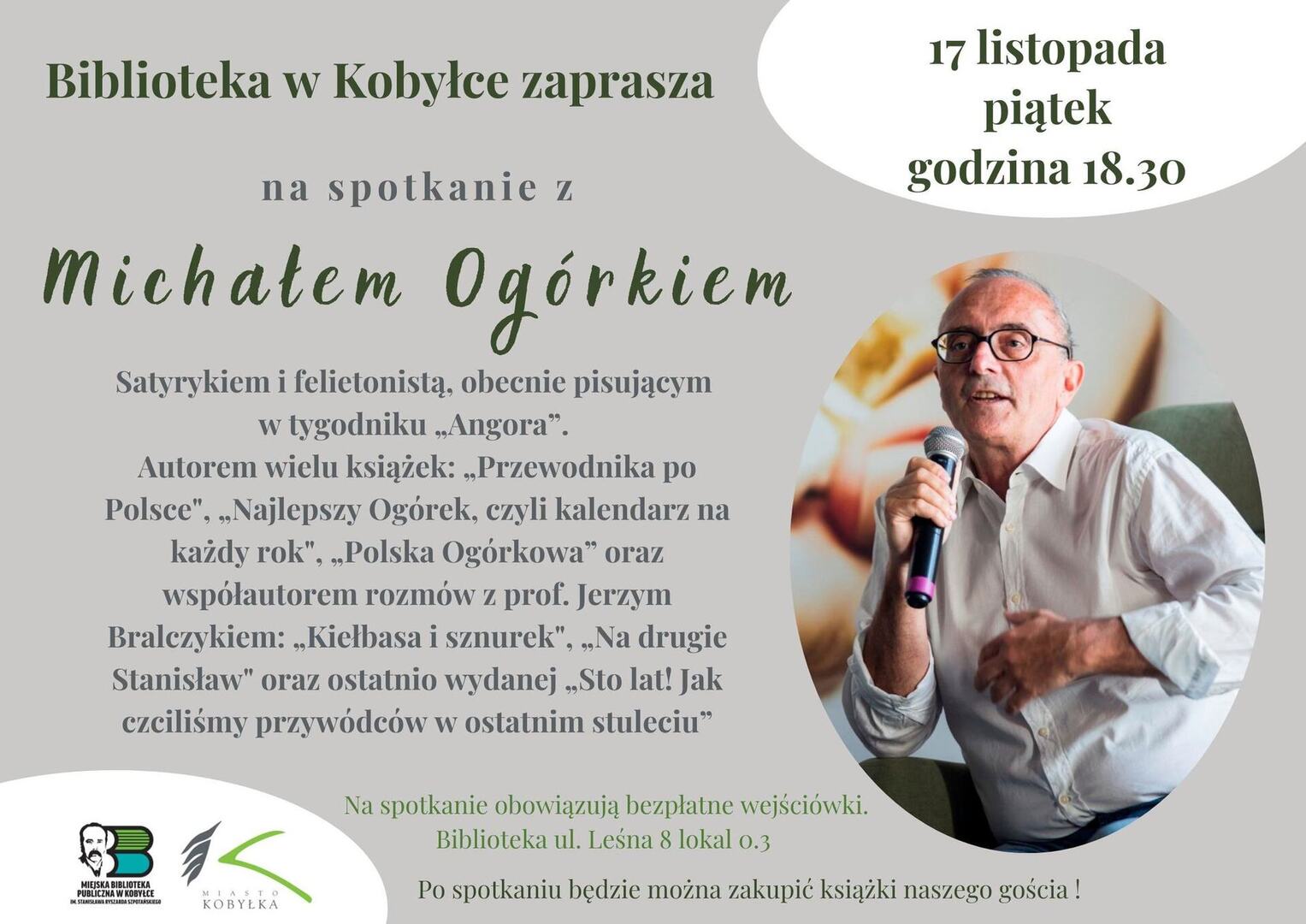 Tym razem zapraszamy Czytelników dorosłych - 17 listopada o godzinie 18:30 będziemy gościć Michała Ogórka - satyryka i felietonistę, od 1989 roku związanego z redakcją „Gazety Wyborczej". Obecnie pisującego w tygodniku „Angora”. Autora wielu książek - „Przewodnika po Polsce", „Najlepszy Ogórek, czyli kalendarz na każdy rok", „Polska Ogórkowa” oraz współautora rozmów z prof. Jerzym Bralczykiem - „Kiełbasa i sznurek", „Na drugie Stanisław" oraz „A bodaj ci nóżka spuchła”. Ostatnio wydał „Sto lat! Jak czciliśmy przywódców w ostatnim stuleciu”, o kulcie przywódców od Piłsudskiego przez Bieruta i Gomułkę po braci Kaczyńskich.