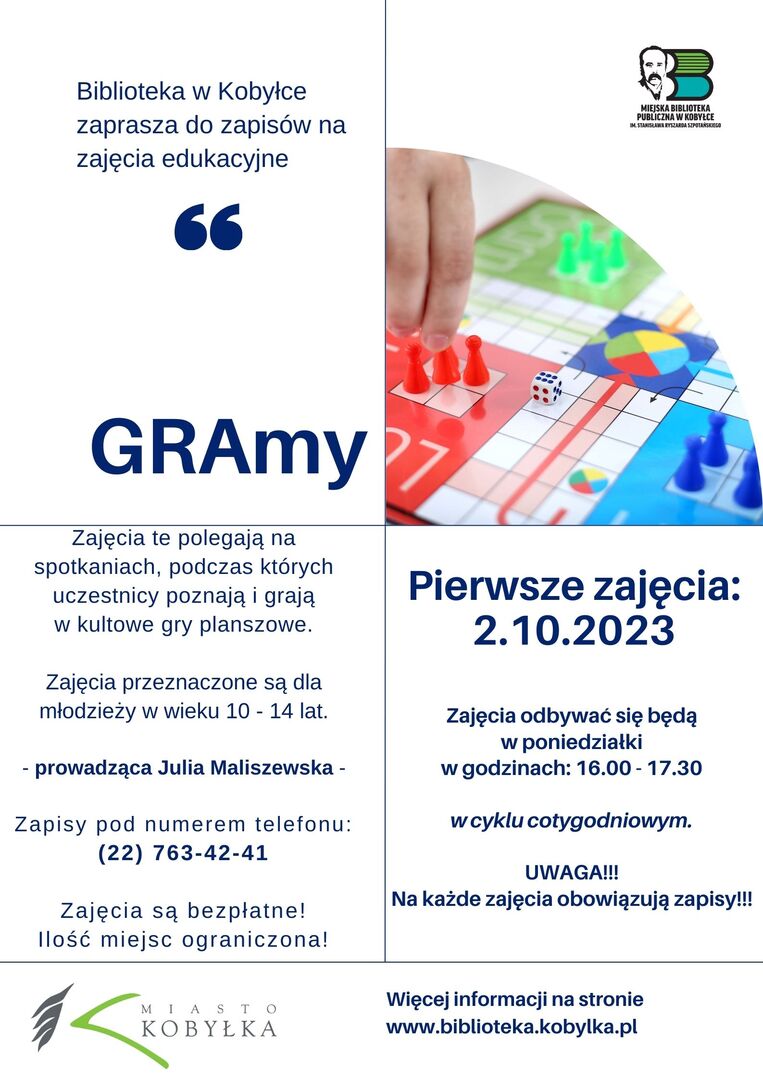 Zajęcia z gier planszowych dla młodzieży w wieku 10-14 lat. Obowiązują zapisy.