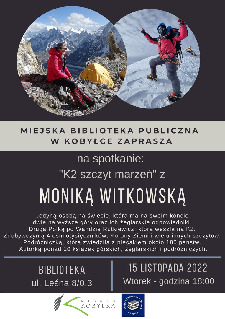 Zapraszamy na spotkanie z Moniką Witkowską już 15 listopada 2022 o godzinie 18:00, która zabierze nas w swojej opowieści na szczyt K2 - drugiej góry świata i najtrudniejszego z ośmiotysięczników, prawdziwego wyzwania dla najlepszych himalaistów.